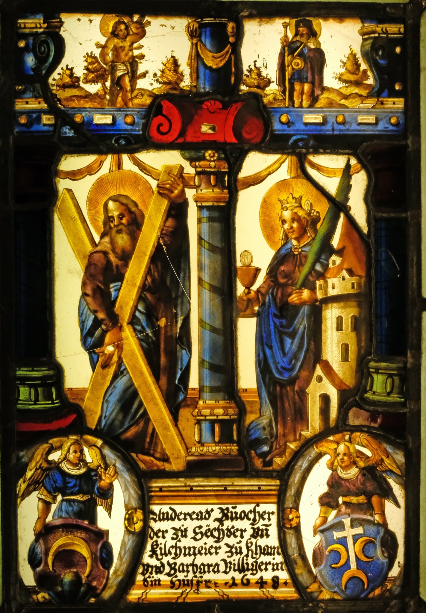 Heraldic Panel Andreas Bucher and Barbara Villiger with Saints Andrew and Barbara