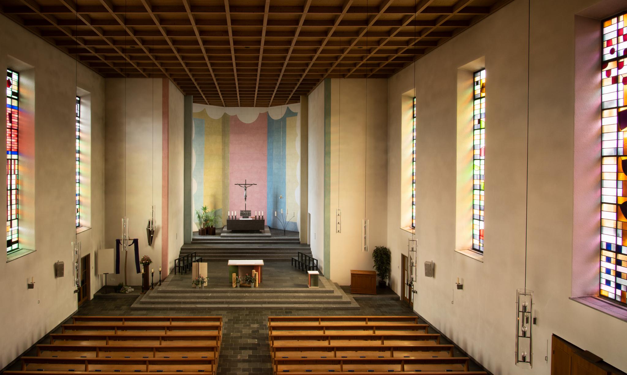 Nach Plänen von Johann Joachim Brenner und Johann Christoph Kunkler wurde die Kirche 1863–1865 unter Einbezug des Turmschaftes von 1478 in Anlehnung an die Kathedralgotik (Spitzbogenfenster, Strebepfeiler, Masswerk und Kreuzblumen) neu gebaut. Damals wurden von Johann Jakob Röttinger für insgesamt 2158.50 Franken Glasmalereien hergestellt und eingesetzt, unter anderem in den Polygonalchor und die heute zugemauerte Westrosette (Katholisches Kirchgemeindearchiv Aadorf, Sign. 55 Dossier 4/8 (Kirchengut); Katholisches Kirchgemeindearchiv Herdern, B 17.2.05 Kirchenneubau 1875/76). Die Umbauten und Renovationen von 1935–1936 und 1962–1964 (Karl Zöllig) führten zur vollständigen Purifizierung aussen und innen, alle neugotischen Stilmerkmale wurden entfernt. Das heutige Erscheinungsbild der Kirche ist sachlich-nüchtern: An das verputzte Langhaus unter Giebeldach mit eingezogenem Polygonchor schliesst an der Nordwestecke der Turm mit Kreuzdach und sechsseitigem Spitzhelm an. Nordseitige Erweiterungen (Sakristei, Taufkapelle und Aubahrungstrakt). Inneres: Einschiffiger Raum mit schlichter Kassettendecke, Glasgemälde von Ferdinand Gehr und Christoph Zünd (Taufkapelle). Letzte Teilrenovation (Altar- und Chorbereich) 1995–1996. Bis 1959 paritätisch genutzt.