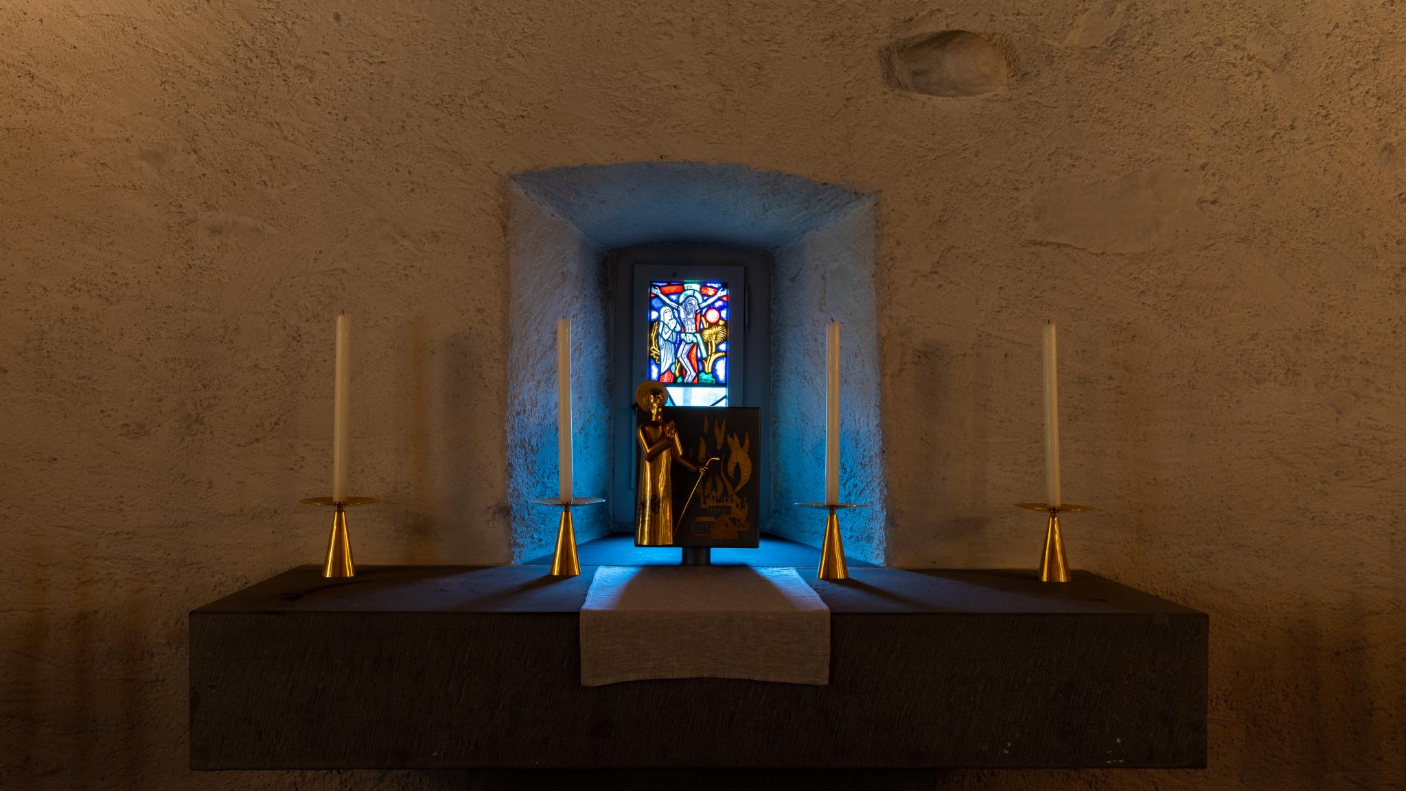 1956 Neugestaltung der Kapelle, die sich im EG des Nordflügels befindet. Dort neue Kopie der Einsiedler Madonna und Glasgemälde von Albin Schweri.