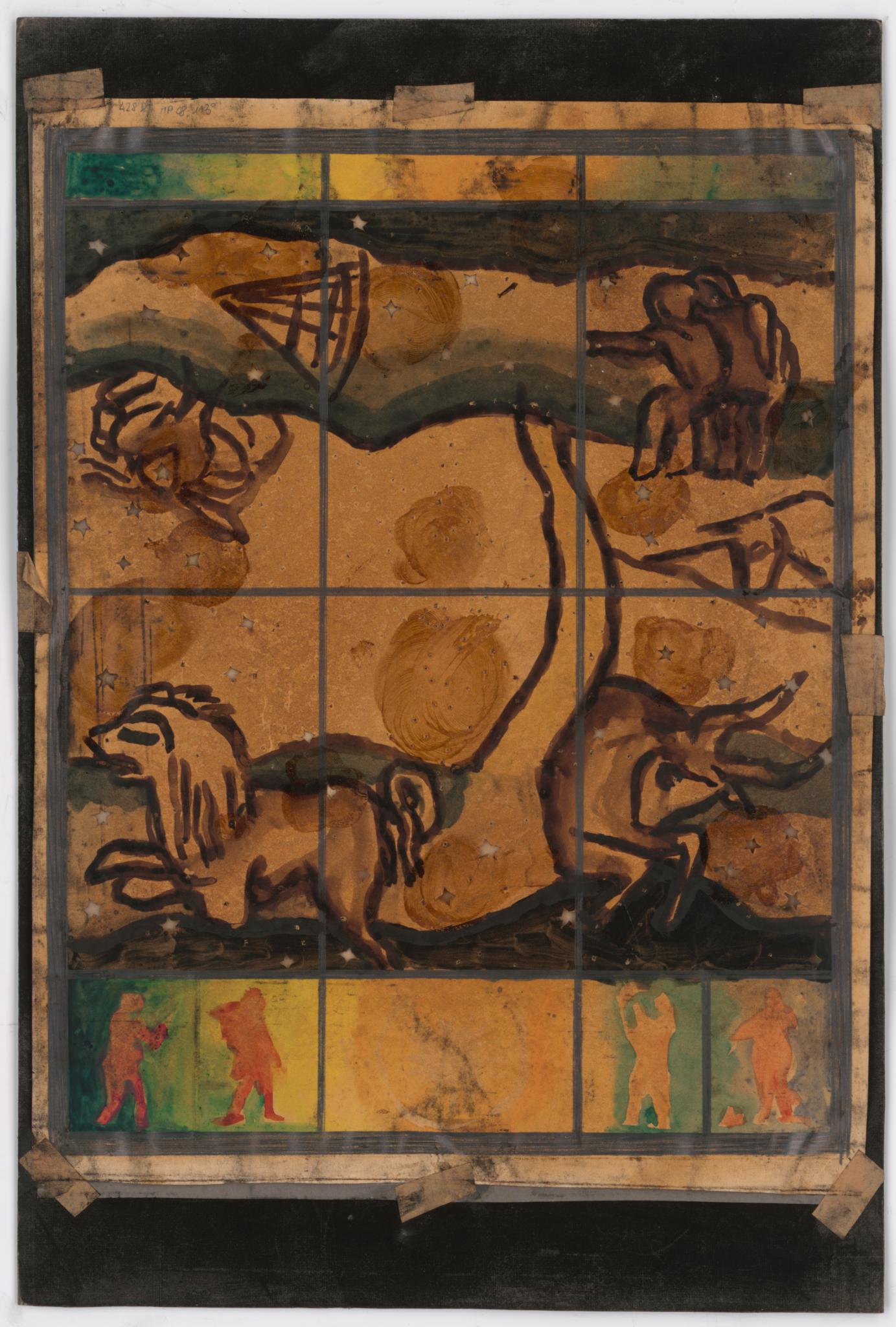 Verso : projet à la gouache de "Cartes du ciel" (mois de juin, juillet, août)