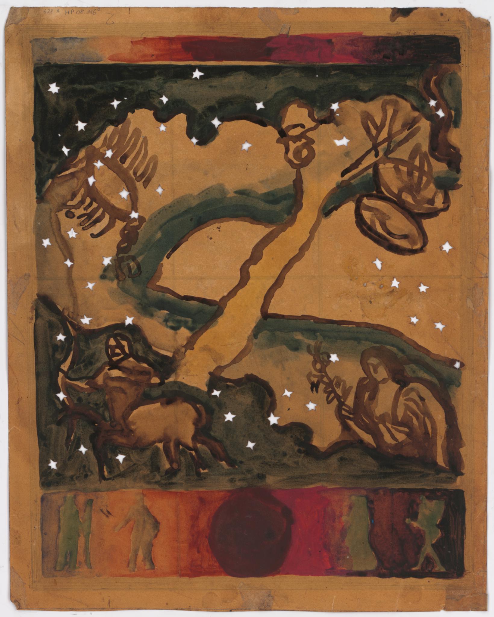 Verso : projet à la gouache de "Cartes du ciel" (mois d'octobre, septembre, novembre, décembre)