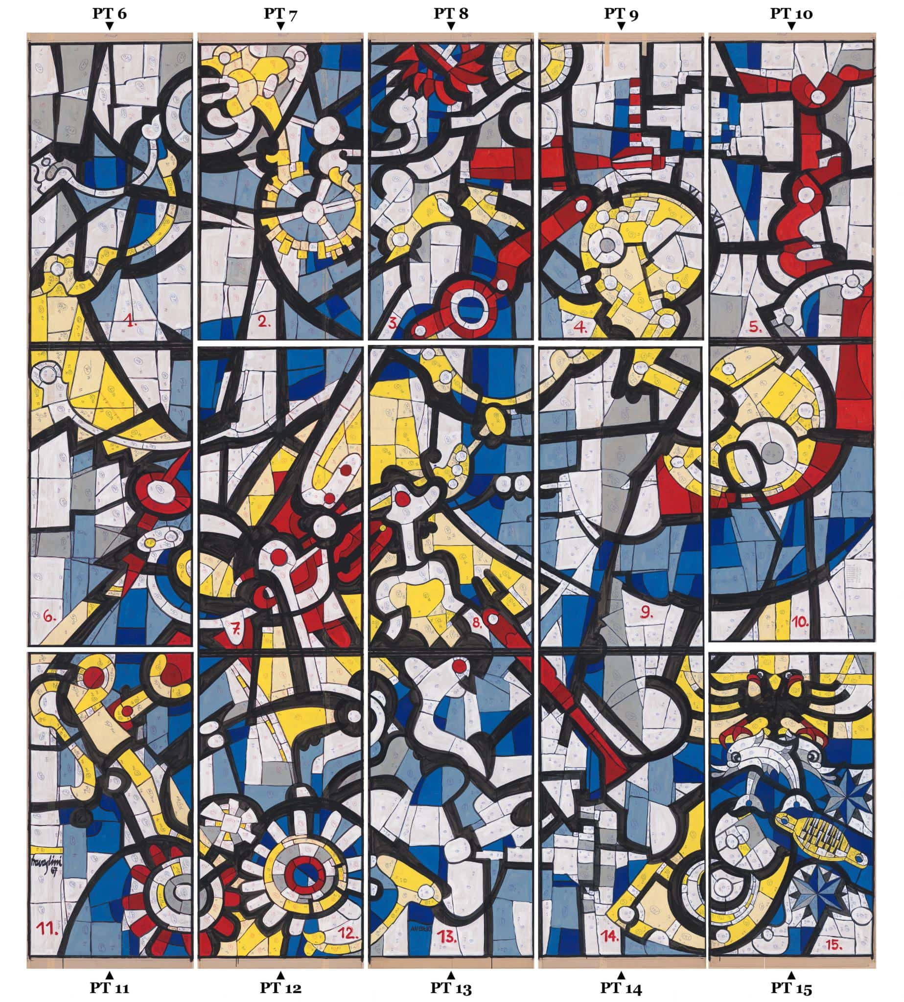 PT_1: Reconstitution des dix cartons pour la dalle de verre de Peter Travaglini dans une villa à Granges (SO)