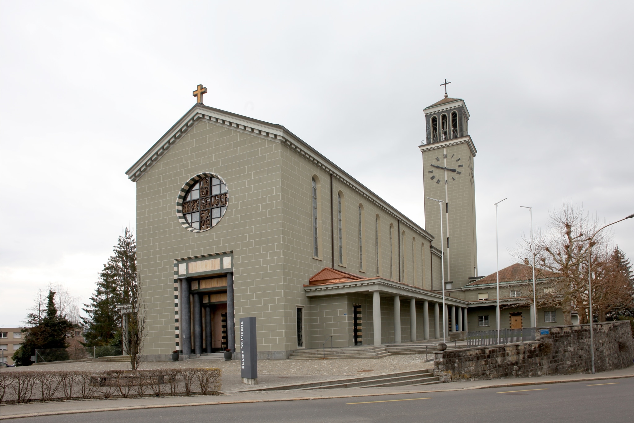 : Vue extérieure de l'église Saint-Pierre de Fribourg