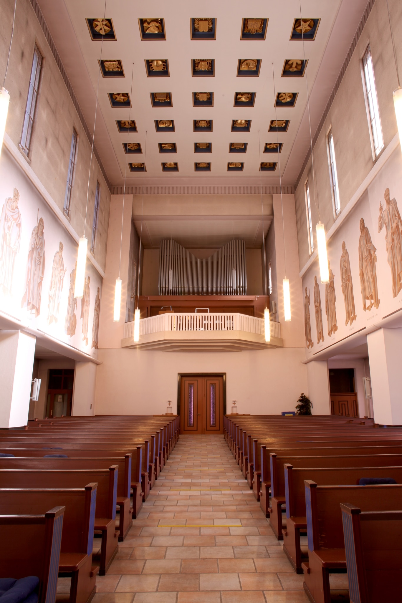 Vue intérieure de l'église du Christ-Roi de Tavannes (vers la tribune)