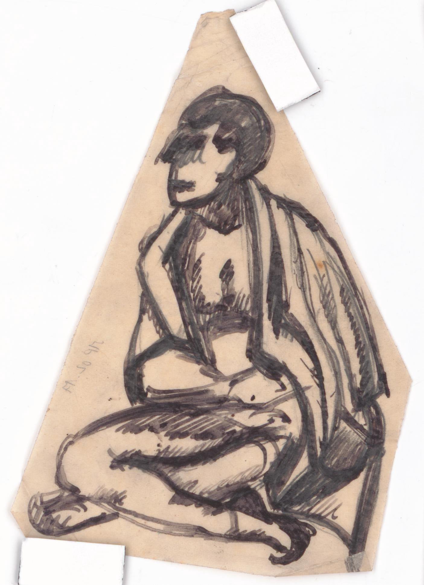 Ce projet fait probablement partie des premiers travaux de Poncet pour le vitrail des quatre Evangélistes, où il étudie la posture de saint Mathieu assis. Des photographies retrouvées dans les archives Poncet à Vich indiquent que l'artiste a eu recours à un modèle pour définir l'anatomie de ses personnages.