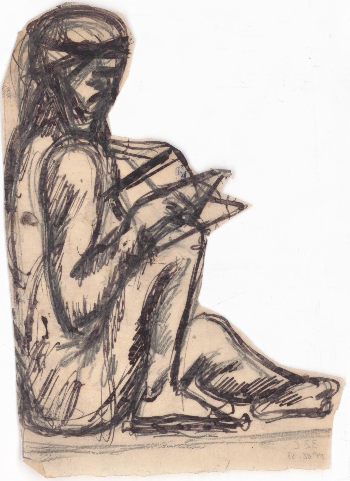 Ce projet fait probablement partie des premiers travaux de Poncet pour le vitrail des quatre Evangélistes, où il étudie la posture de saint Marc assis. Des photographies retrouvées dans les archives Poncet à Vich indiquent que l'artiste a eu recours à un modèle pour définir l'anatomie de ses personnages.