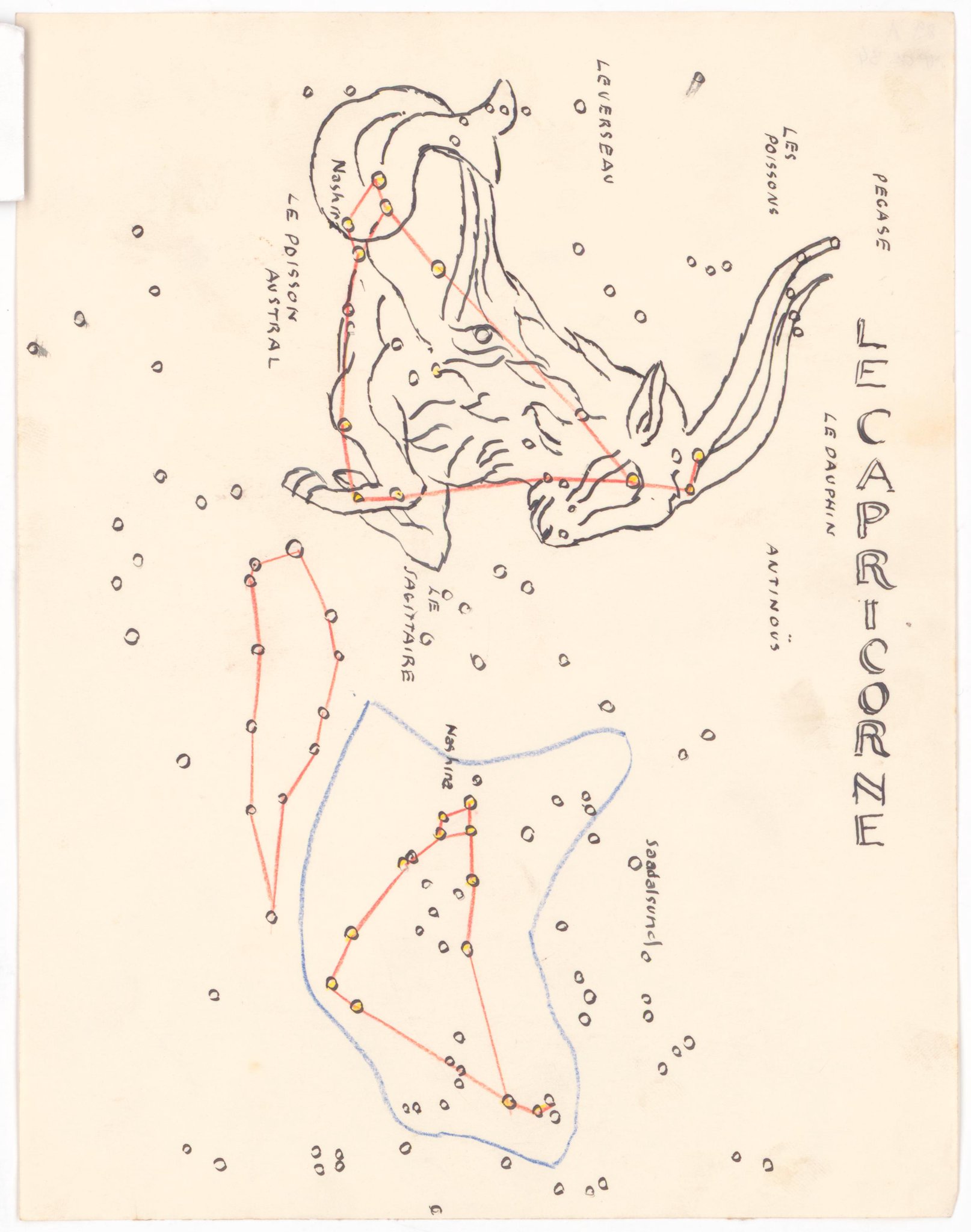 [A l'envers :] LE CAPRICORNE // LES POISSONS // LE DAUPHIN / ANTINOÜS / LE VERSEAU // Saadalsund / Nashira // LE SAGITTAIRE // Nashira / LE POISSON AUSTRAL.