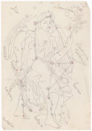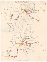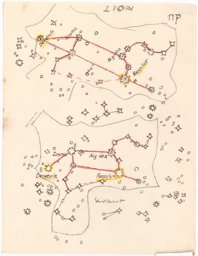 Étude pour des vitraux sur le thème de la "carte du ciel": la constellation du Bélier et ses principales étoiles.