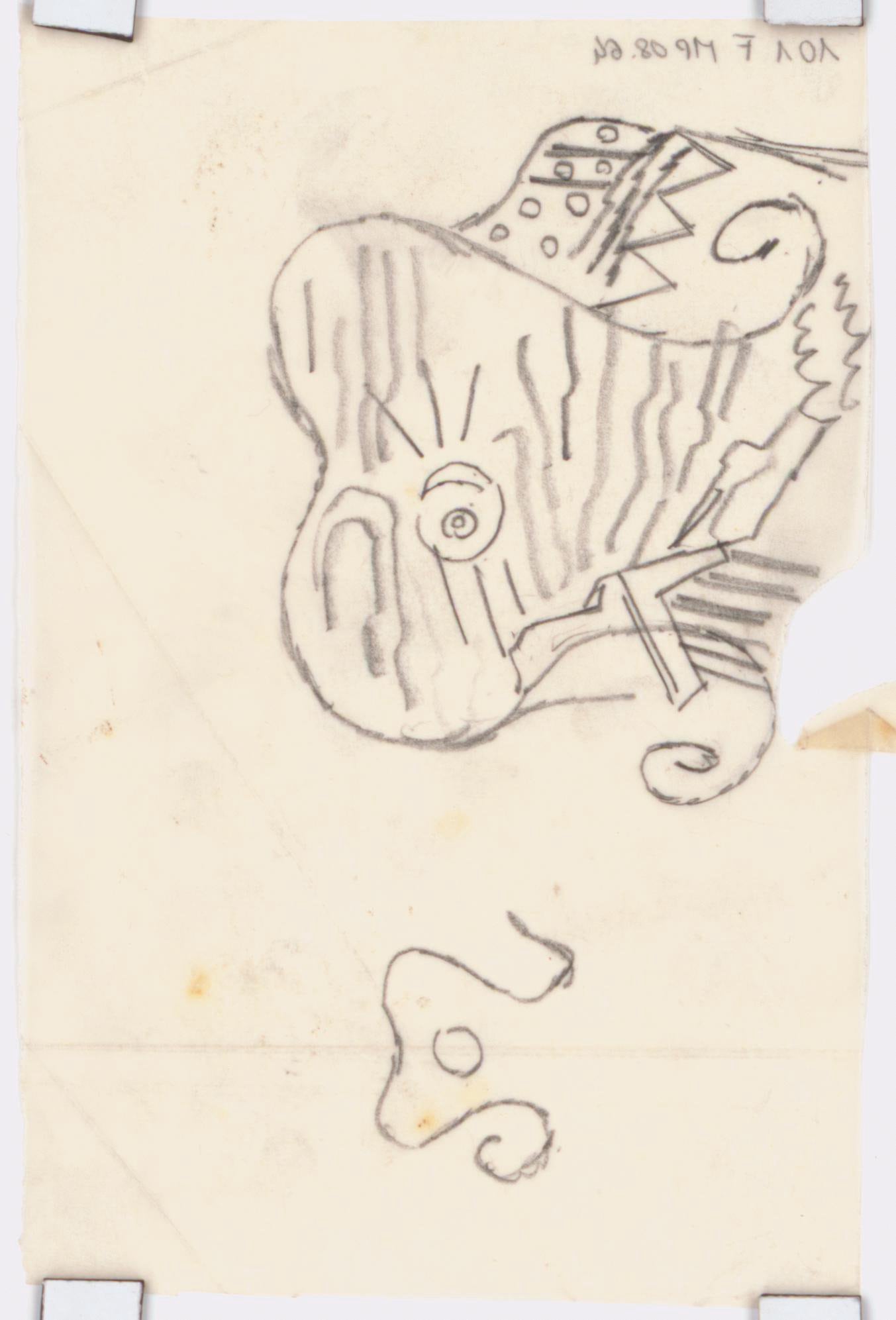 Esquisse pour des vitraux sur le thème de la "carte du ciel" : la lyre, pour le vitrail de la constellation de la Lyre.