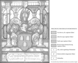 Einige Gläser der Rahmenarchitektur neu ergänzt; geringe Bemalungs- und Sprungschäden; die Verbleiung erneuert.