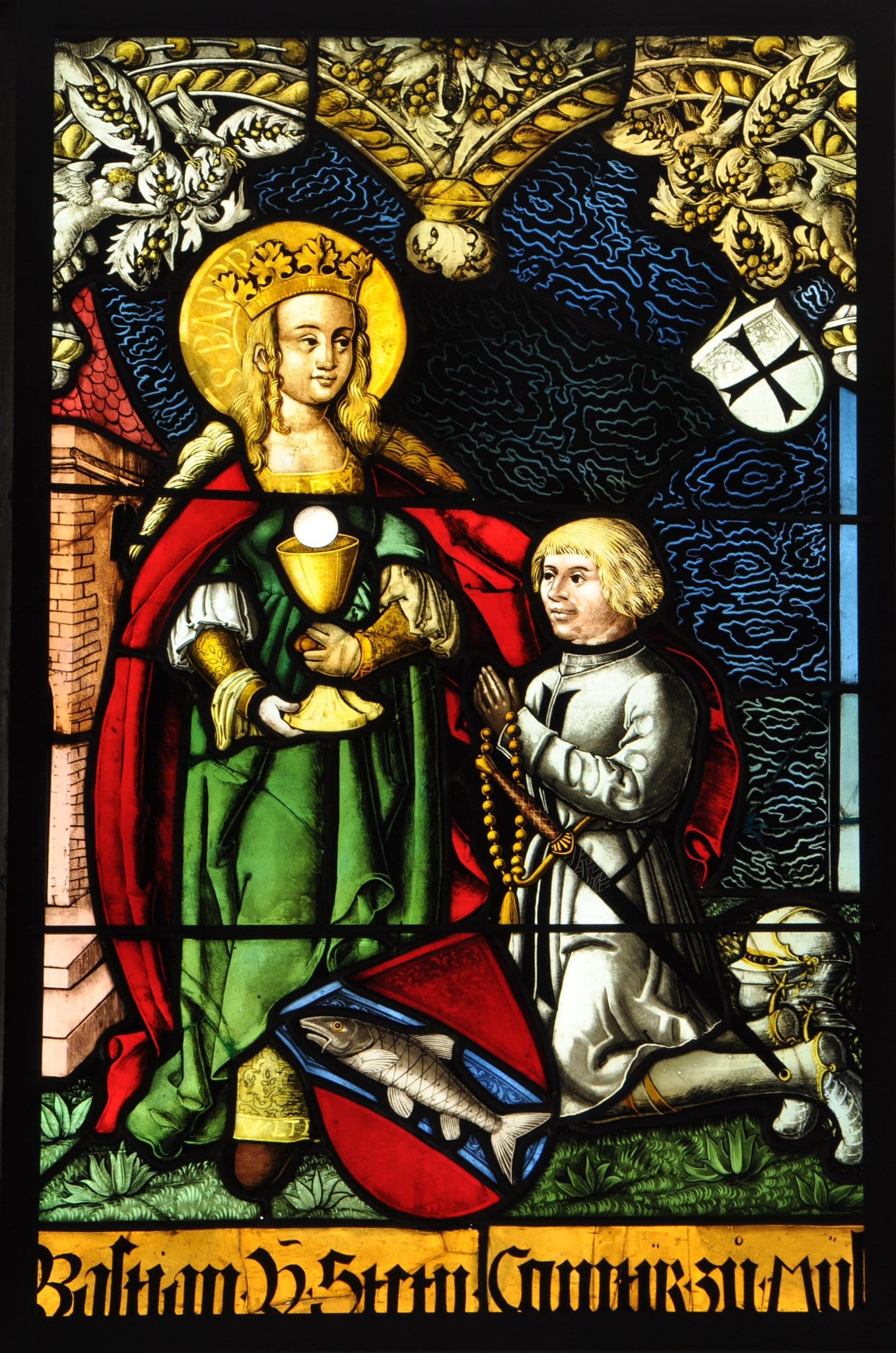 11HH(BARBARA) · the virgin martyr Barbara; possible attributes: book, cannon(ball), crown, cross, chalice with wafer, Dioscuros (her father), peacock feather, sword, torches, mason's tools, tower