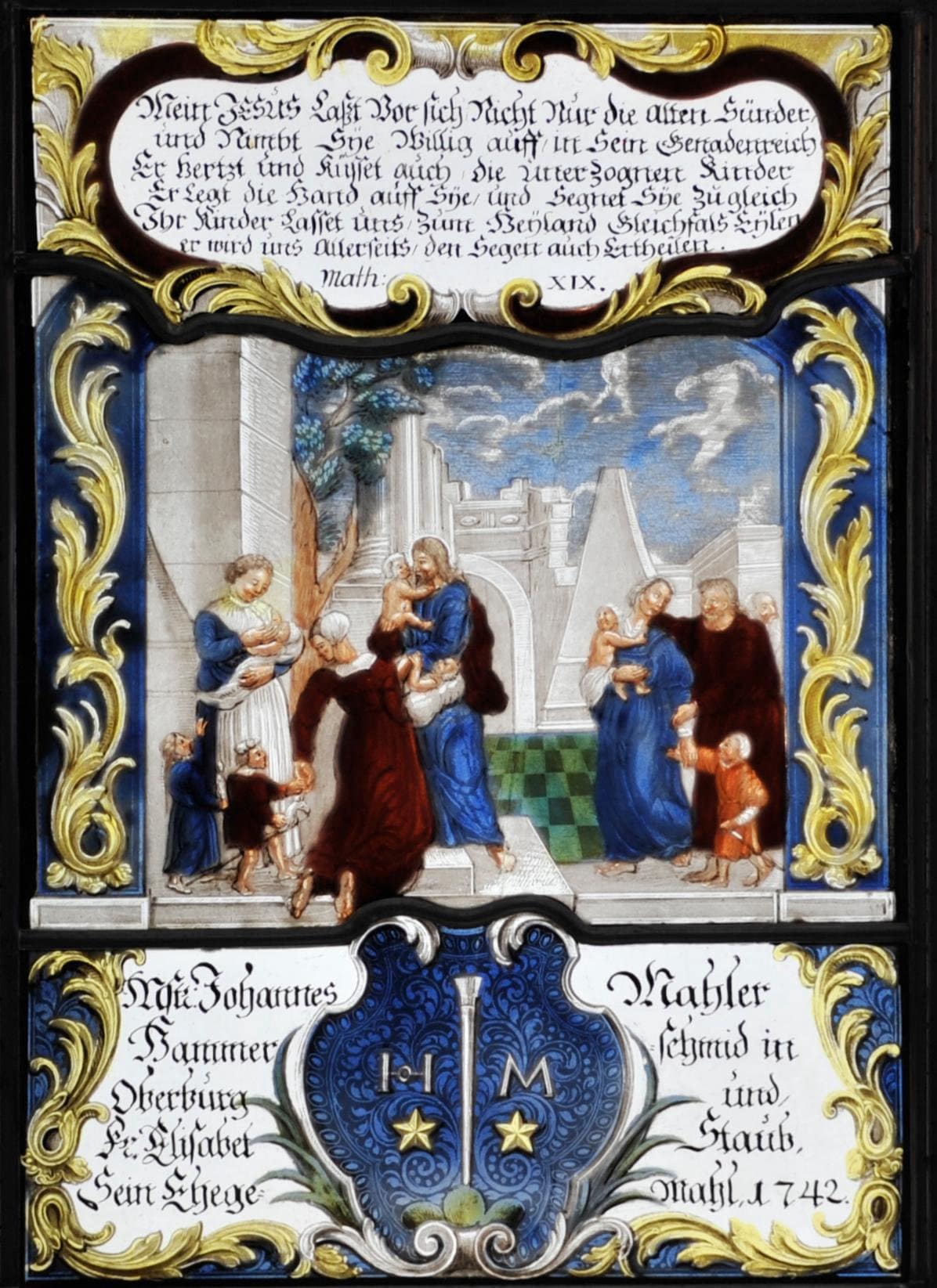 Mstr. Johannes Mahler / Hammer schmid in / Oberburg und / Fr. Elisabet Staub, / Sein Ehege= mahl, 1742.