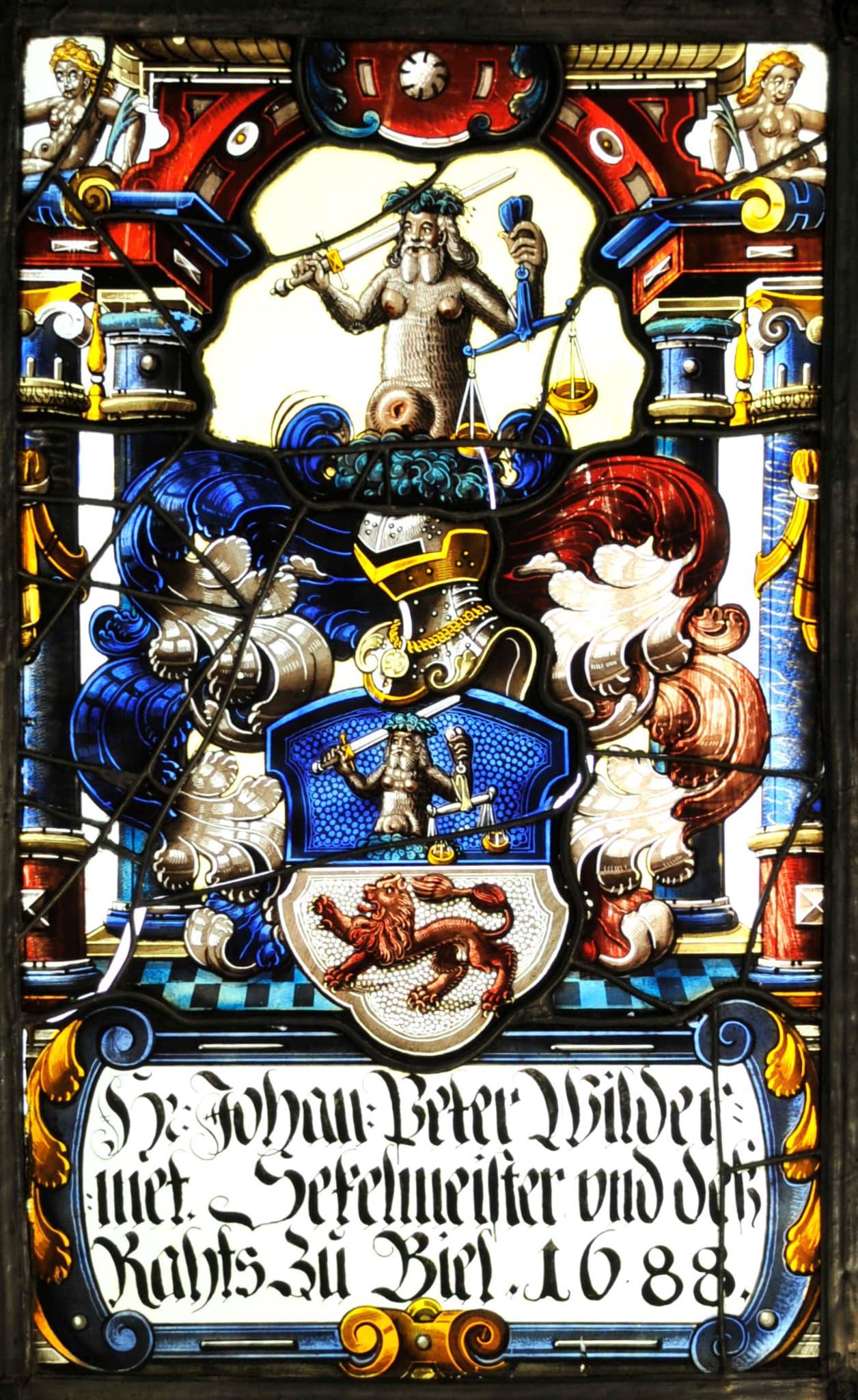 Hr: Johan: Peter Wilder= / met. Sekelmeister vnd deβ / Rahts zů Biel. 1688.