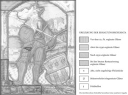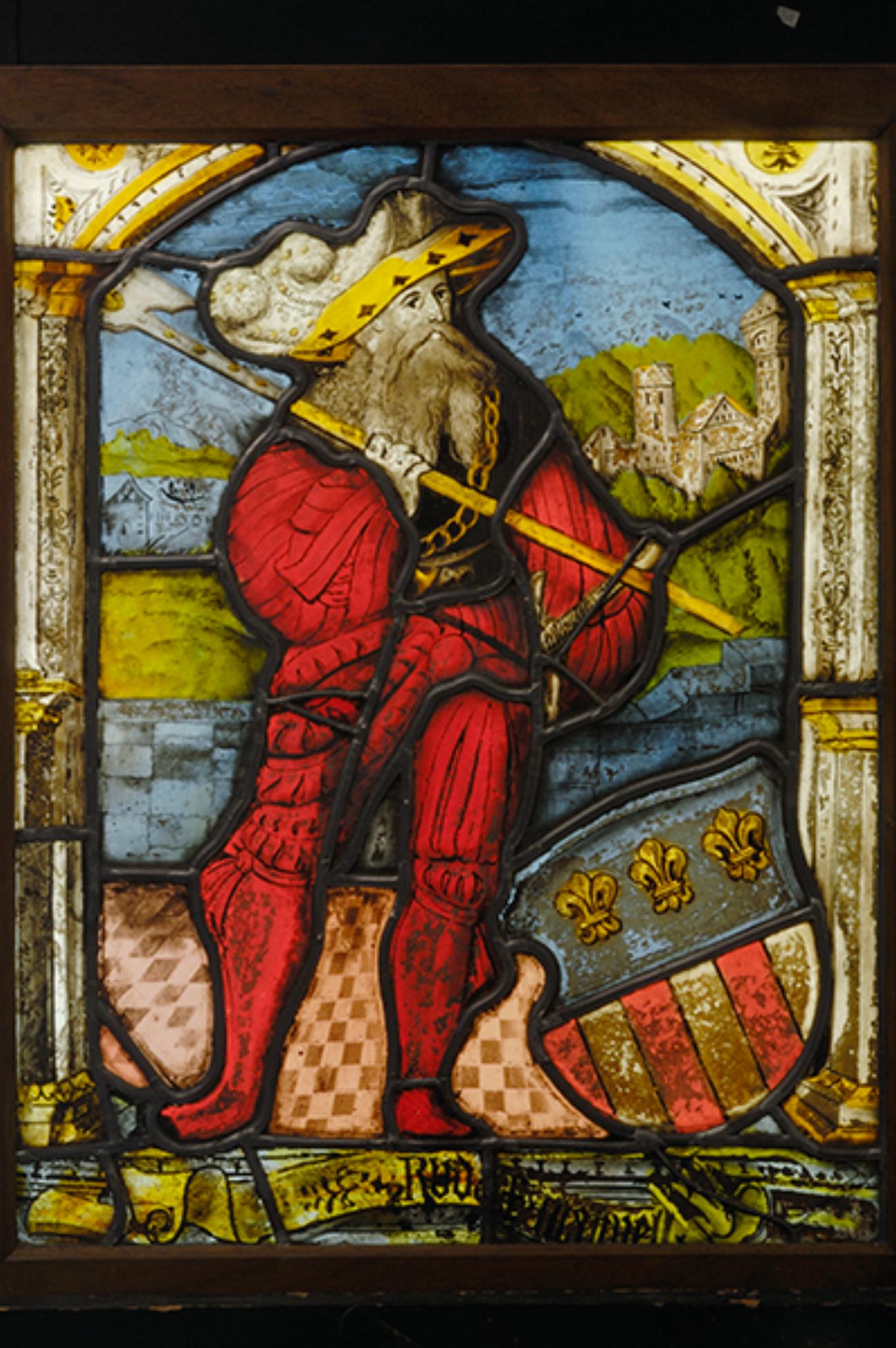 Die auf der Scheibe festgehaltene langbärtige Figur lässt sich kaum als eine eigentliche Porträtdarstellung Hans Rudolf Manuels ansprechen, so wie dies Rudolf Wegeli (1931) tut. Dass ein langer Bart und Schnauz den Scheibenstifter Hans Rudolf Manuel auszeichneten, ist allerdings denkbar. Darauf deutet der erwähnte Riss zur Scheibe Manuels im Bernischen Historischen Museum, worauf der neben dessen Wappenschild stehende Krieger in vergleichbarer Haartracht erscheint. Sollte Manuel tatsächlich eine derart üppige Haartracht besessen haben, dann hätte er sich freilich nicht dem Idealbild des Eidgenossen, sondern jenem von dessen Widersacher, dem Landsknecht, angeglichen, so wie er diesen 1547 auf einem Holzschnitt verewigte (Bächtiger 1975, S. 254–256, Abb. 16, 17).