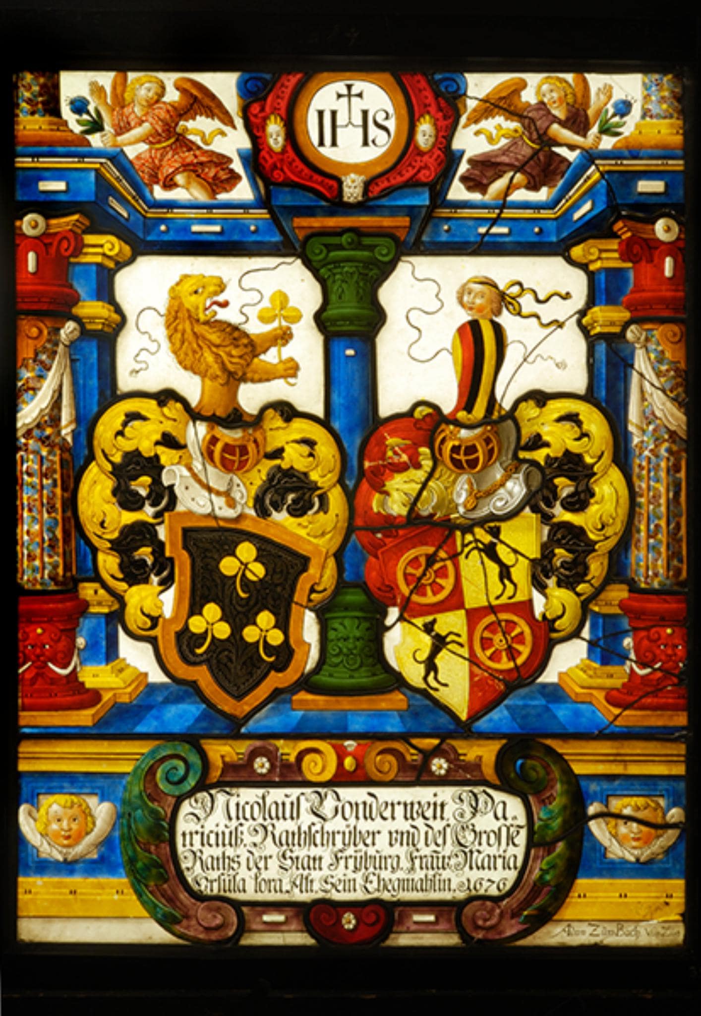 Hasler, R., Keller, S., & Bergmann, U. (2016). Allianzwappenscheibe Nikolaus Von der Weid und Maria Ursula Eleonora Alt. In Vitrosearch. Retrieved December 13, 2025 from https://www.vitrosearch.ch/objects/2472084.