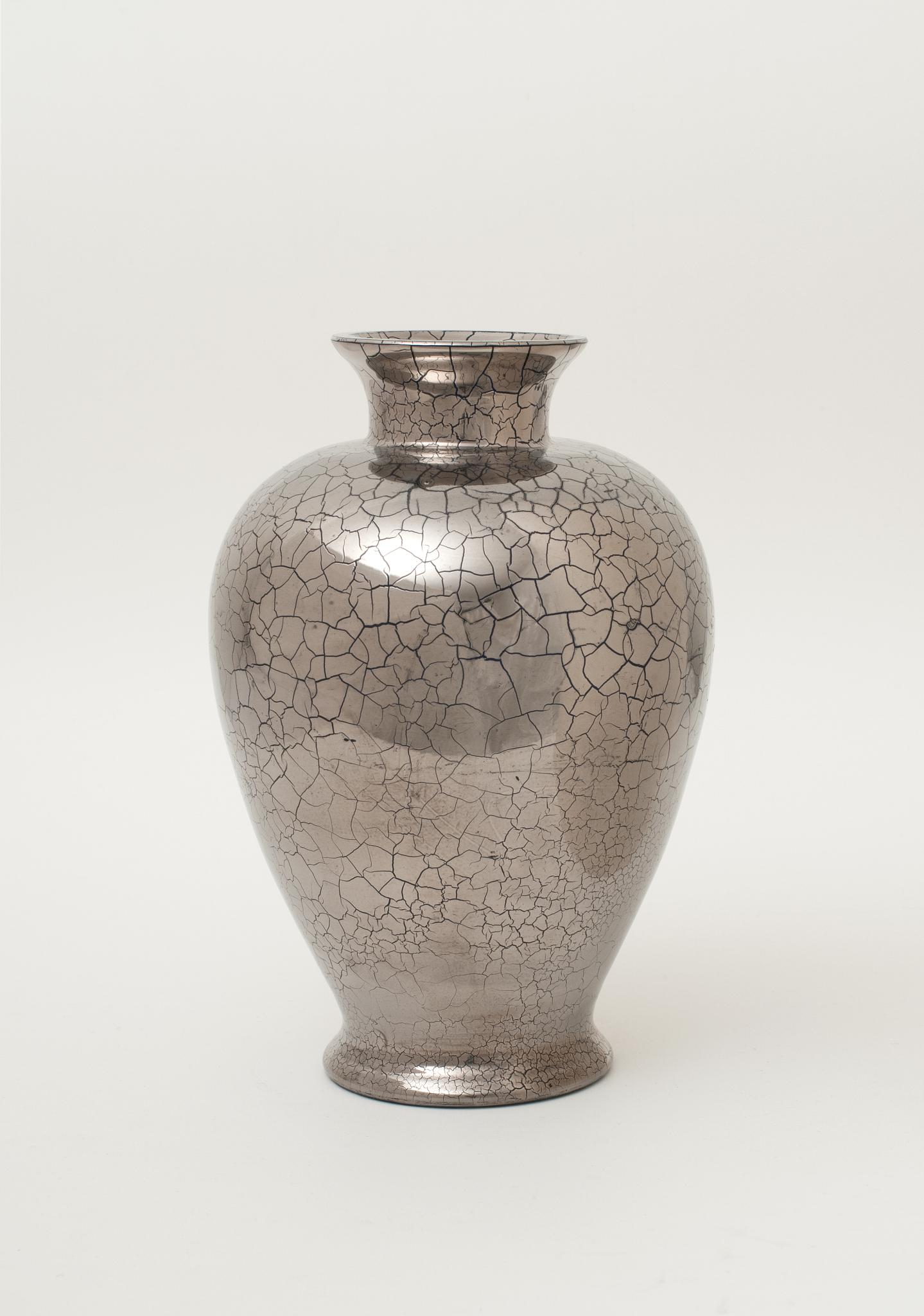 Vase argent craquelé à panse ovoïdale et col étroit