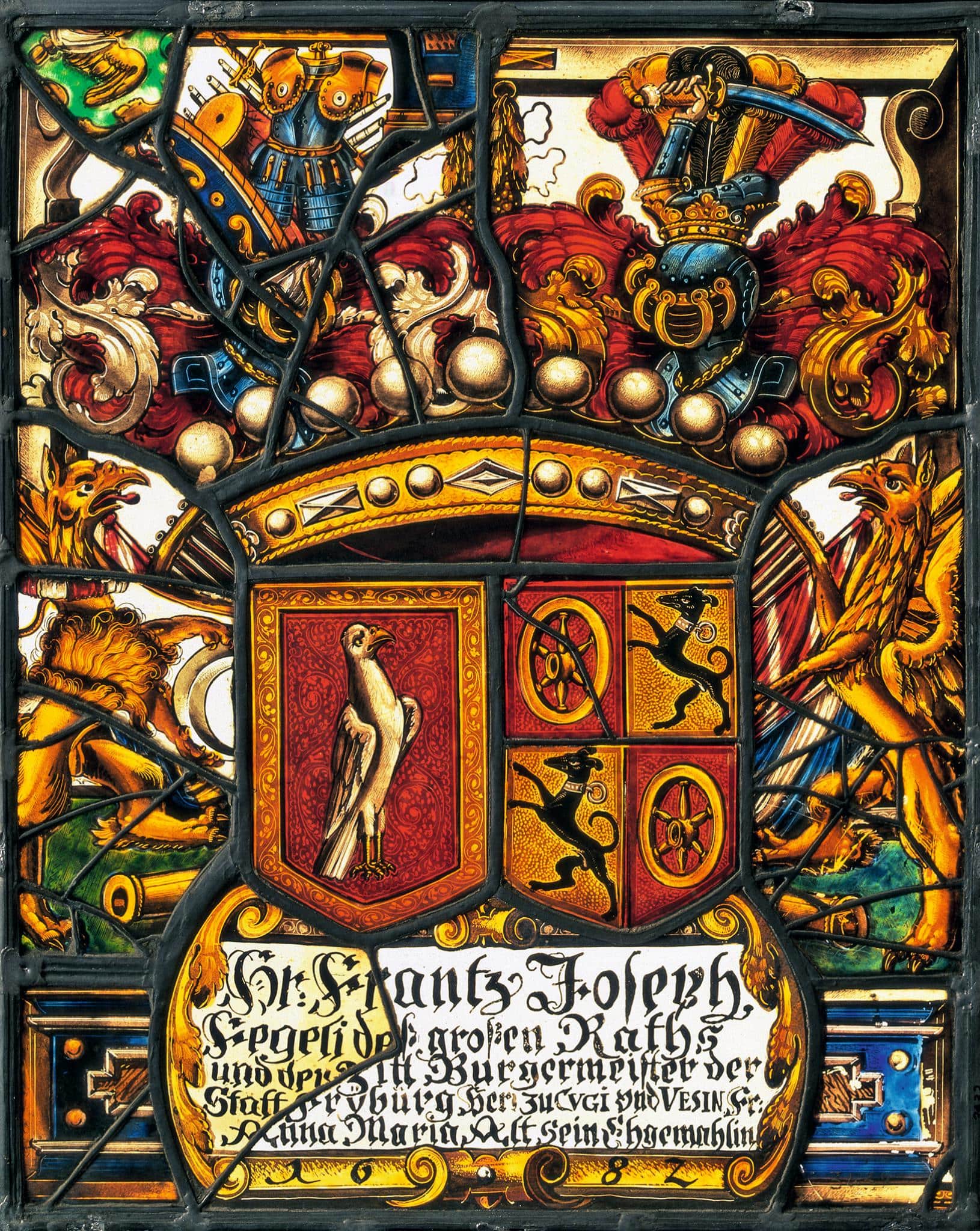 Stifterinschrift: Hr: Fr[antz Joseph] / Fegeli de[ß großen Raths] / und der [Zitt Burgermeister der] / Statt [Frÿburg, Herr zu Cvgi vnd Vesin, Fr:] / A[nna Maria Alt sein Ehgemahlin / 1682.] [ergänzt].