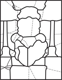 Das volle Stifterwappen steht innerhalb einer fluchtenden Bogenarchitektur mit zwei schmalen Seitendurchgängen, über denen Balustraden den Abschluss bilden. Darüber spannt sich ein Bogen, von dem mit Käfern und Schnecken belebtes Bandelwerk herabhängt. Zwischen den vorgestellten roten Säulen und den rückwärtigen Pilastern halten zwei Engel die Passionswerkzeuge, links das Kreuz, rechts die Geisselsäule und Geissel. Vor hohen Säulenpostamenten begleiten am Fuss der Scheibe zwei sitzende Tugendallegorien die Stifterinschrift. Links betrachtet Prudentia (die Klugheit) ihr Spiegelbild, rechts hält Justitia (die Gerechtigkeit) Schwert und Waage.