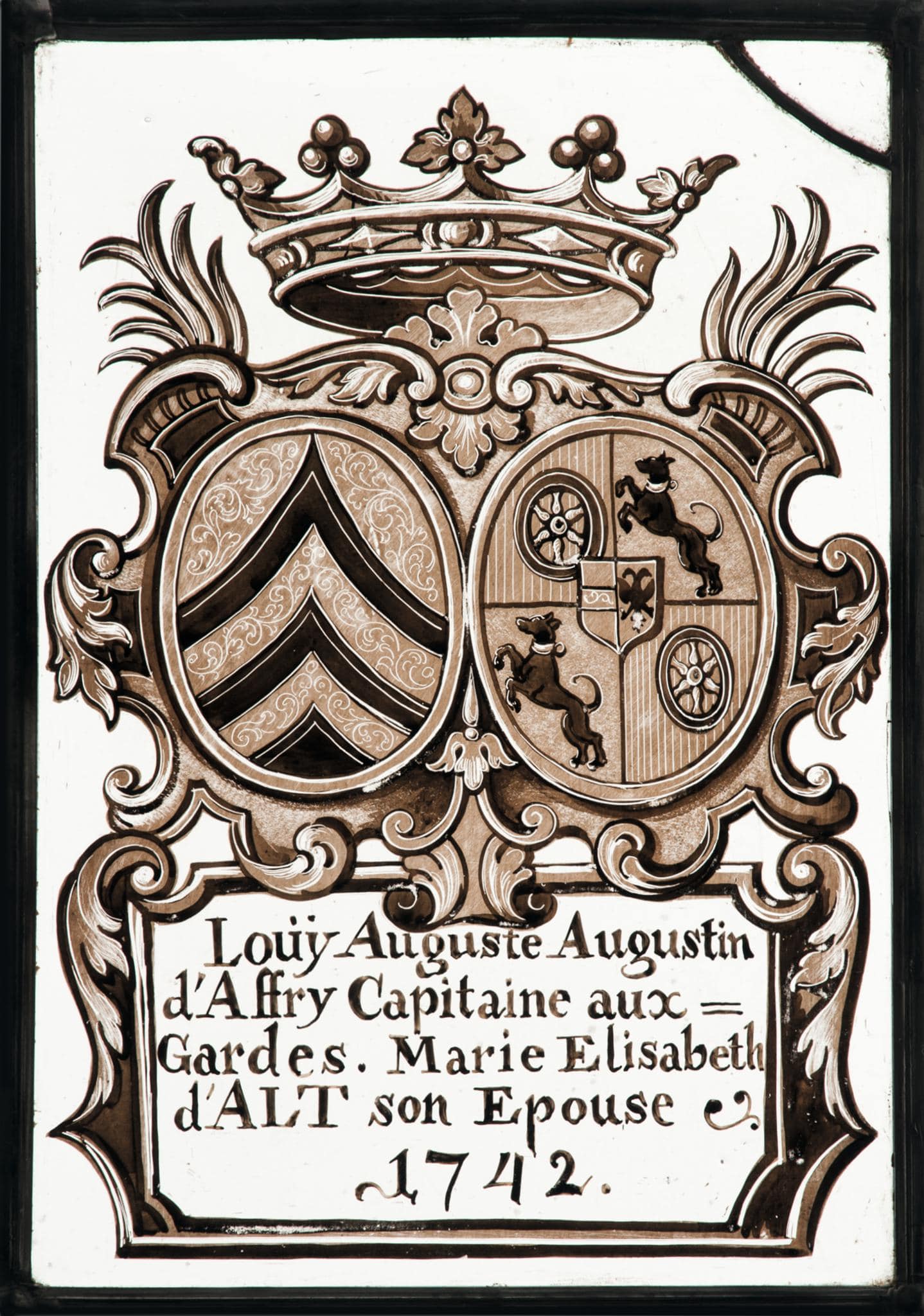 Bergmann, Uta. Die Freiburger Glasmalerei des 16.–18. Jahrhunderts / Le vitrail fribourgeois du XVIe au XVIIIe siècle (Corpus vitrearum Schweiz, Reihe Neuzeit, Bd. 6 / époque moderne vol. 6). 2 Bde / vol. Bern et al. 2014. Bd. 2. Kat.-Nr. 234.
