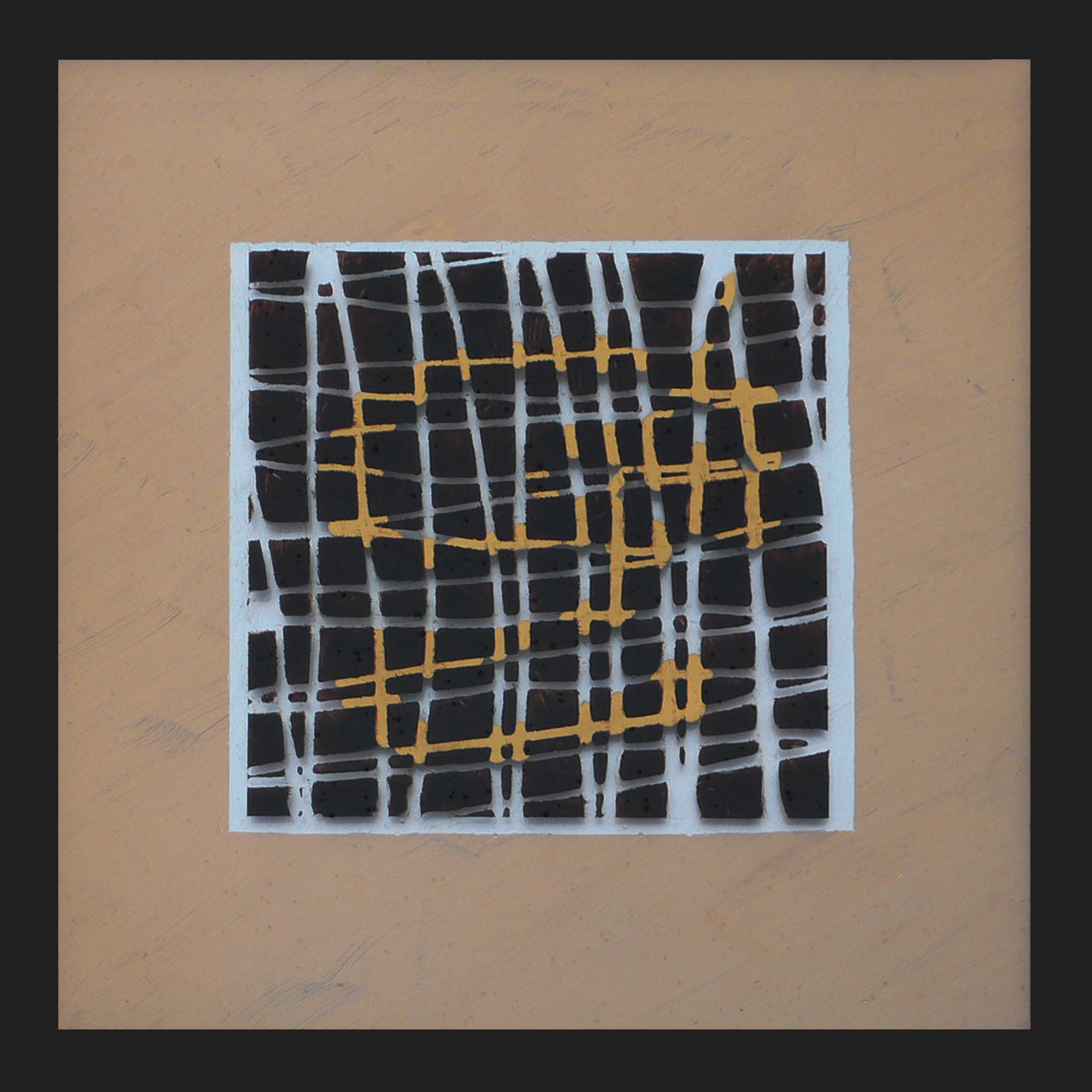 Interpretationsoffene Malerei. Das Hinterglasbild besteht aus drei Glastafeln (Floatglas). Diese beiden vorderen sind in einem Abstand von 5 mm hintereinandergestellt und durch eine schwarze Holzleiste getrennt. Dem Bild wird dadurch eine räumliche Tiefenwirkung verliehen. Die 3. Glastafel ist ohne Abstand hinter die 2, Glastafel gesetzt.