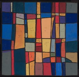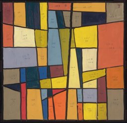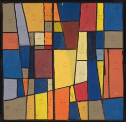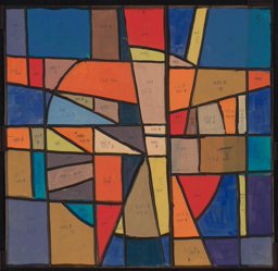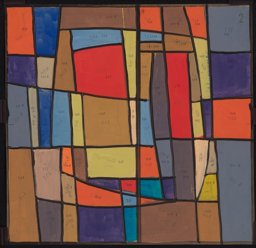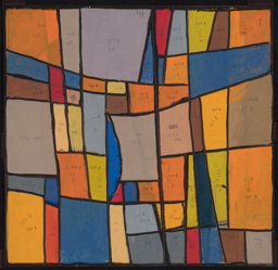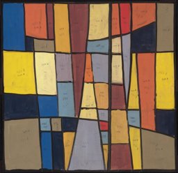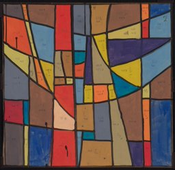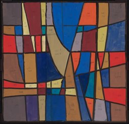 Ce carton de Bodjol est le projet définitif pour l'une des vingt verrières (VMR_829) commandées en 1983 à l’artiste par Jean-Jacques Buard, alors pasteur de la paroisse protestante de Cointrin-Avanchet, pour orner les dix paires de fenêtres carrées du Centre communautaire oecuménique d'Avanchet. Celui-ci a été vendu en 2016 par les églises protestante et catholique à l’église pentecôtiste, qui a déposé l’ensemble des verrières, sauvé in extremis par l’Association pour la Promotion de l’Art Sacré (APAS) (Buard, 2018). La même année, six verrières ont été offertes par l’APAS à la chapelle des Crêts au Grand-Saconnex, deux en 2017 au Vitromusée Romont, dont celle correspondant à ce carton, et cinq à la paroisse protestante d’Anières en 2018. Sept verrières, dont celle correspondant à ce carton, sont encore propriété de l'APAS et pourraient être offertes à d'autres paroisses qui souhaiteraient orner leur sanctuaire d'une ou plusieurs de ces verrières.