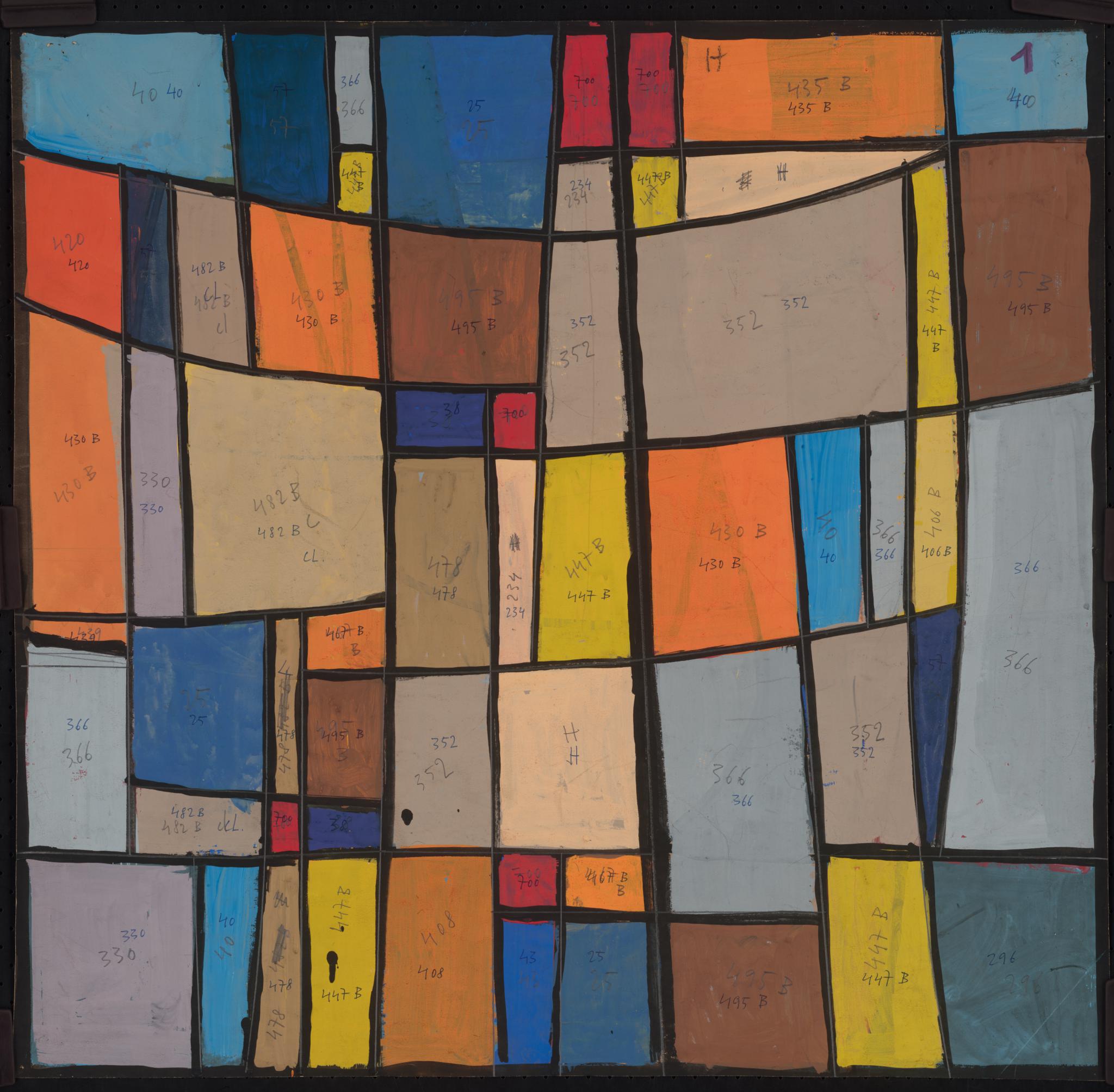 Ce carton de Bodjol est le projet définitif pour l'une des vingt verrières (GE_118.06) commandées en 1983 à l’artiste par Jean-Jacques Buard, alors pasteur de la paroisse protestante de Cointrin-Avanchet, pour orner les dix paires de fenêtres carrées du Centre communautaire oecuménique d'Avanchet. Celui-ci a été vendu en 2016 par les églises protestante et catholique à l’église pentecôtiste, qui a déposé l’ensemble des verrières, sauvé in extremis par l’Association pour la Promotion de l’Art Sacré (APAS) (Buard, 2018). La même année, six verrières ont été offertes par l’APAS à la chapelle des Crêts au Grand-Saconnex, deux en 2017 au Vitromusée Romont, et cinq à la paroisse protestante d’Anières en 2018. Sept verrières sont encore propriété de l'APAS, dont celle correspondant à ce carton, et pourraient être offertes à d'autres paroisses qui souhaiteraient orner leur sanctuaire d'une ou plusieurs de ces verrières.