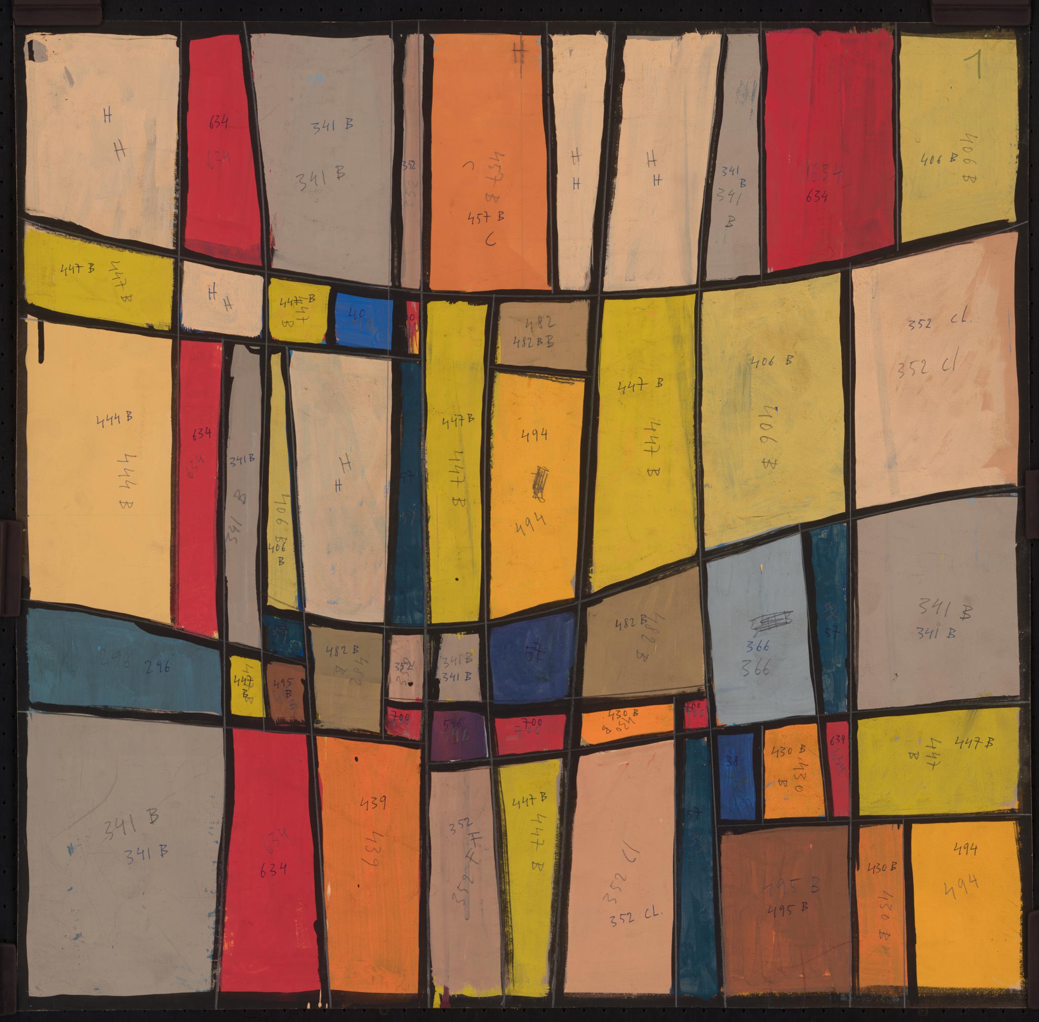 Ce carton de Bodjol est le projet définitif pour l'une des vingt verrières (GE_118.04) commandées en 1983 à l’artiste par Jean-Jacques Buard, alors pasteur de la paroisse protestante de Cointrin-Avanchet, pour orner les dix paires de fenêtres carrées du Centre communautaire oecuménique d'Avanchet. Celui-ci a été vendu en 2016 par les églises protestante et catholique à l’église pentecôtiste, qui a déposé l’ensemble des verrières, sauvé in extremis par l’Association pour la Promotion de l’Art Sacré (APAS) (Buard, 2018). La même année, six verrières ont été offertes par l’APAS à la chapelle des Crêts au Grand-Saconnex, deux en 2017 au Vitromusée Romont, et cinq à la paroisse protestante d’Anières en 2018. Sept verrières sont encore propriété de l'APAS, dont celle correspondant à ce carton, et pourraient être offertes à d'autres paroisses qui souhaiteraient orner leur sanctuaire d'une ou plusieurs de ces verrières.