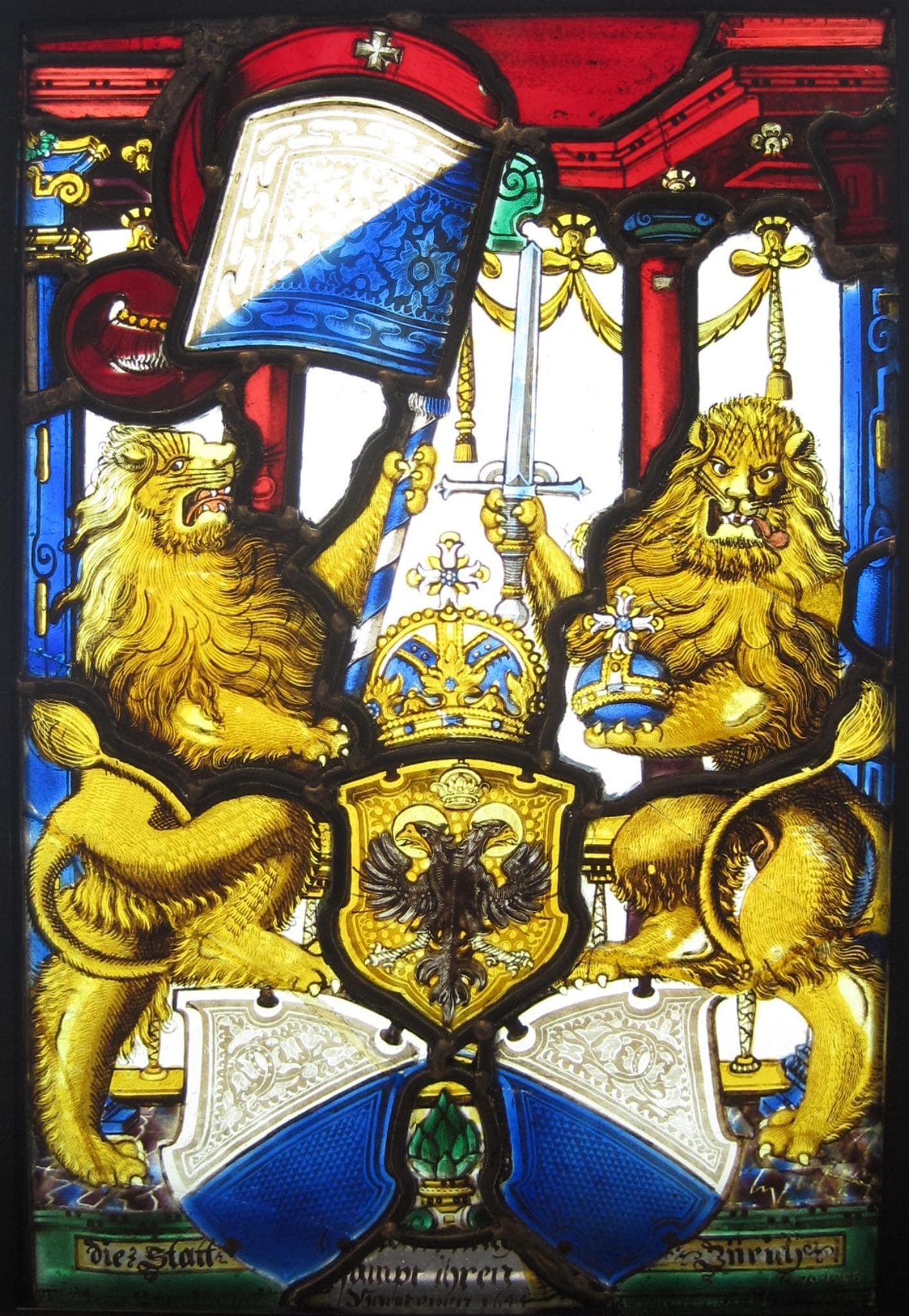 VAM_40: Vitrail cantonal aux armes de Zürich et du Saint-Empire romain germanique · Standesscheibe Zürich