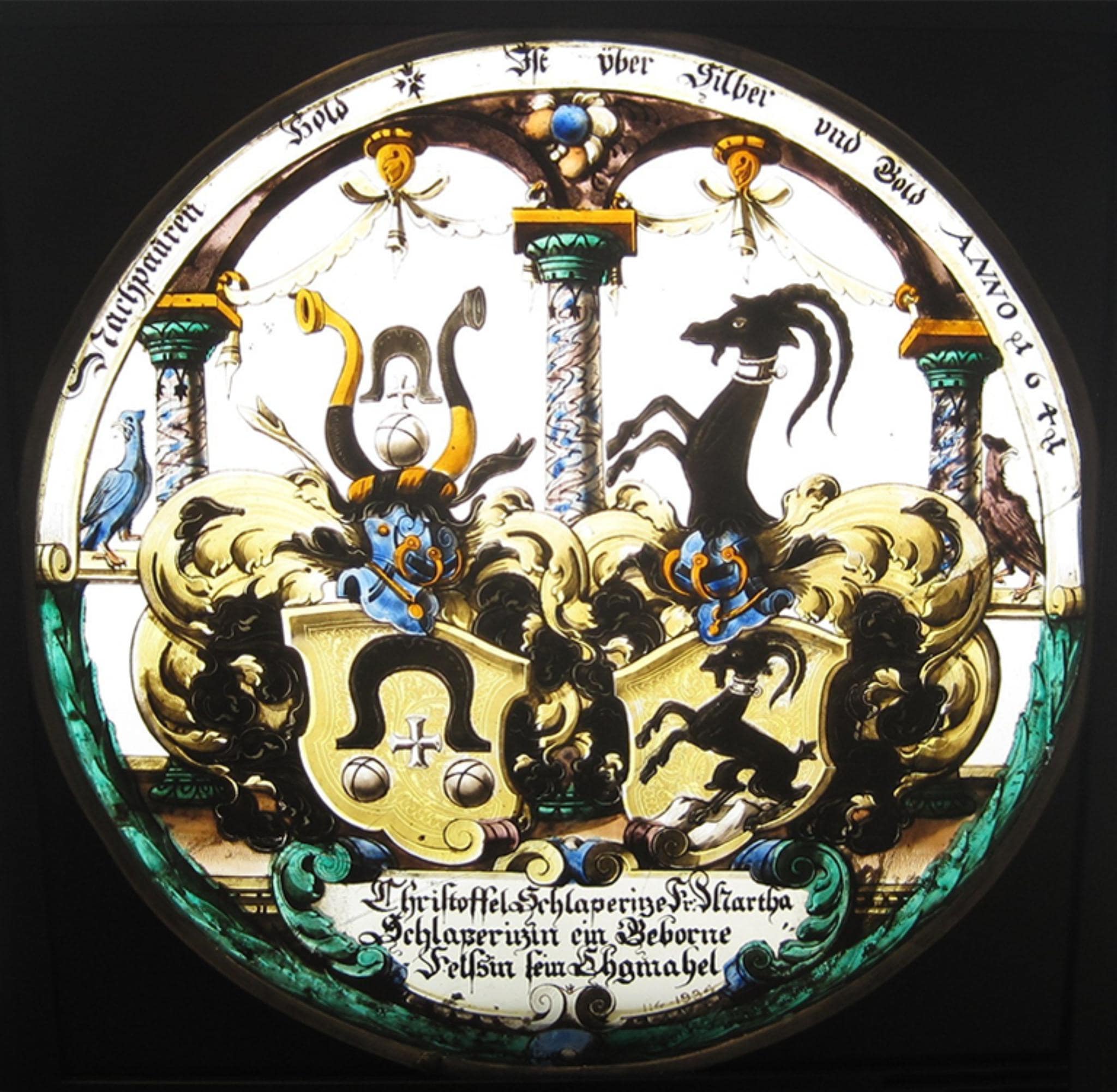 Wappenscheibe Christoph Schlaperitz und Martha Fels