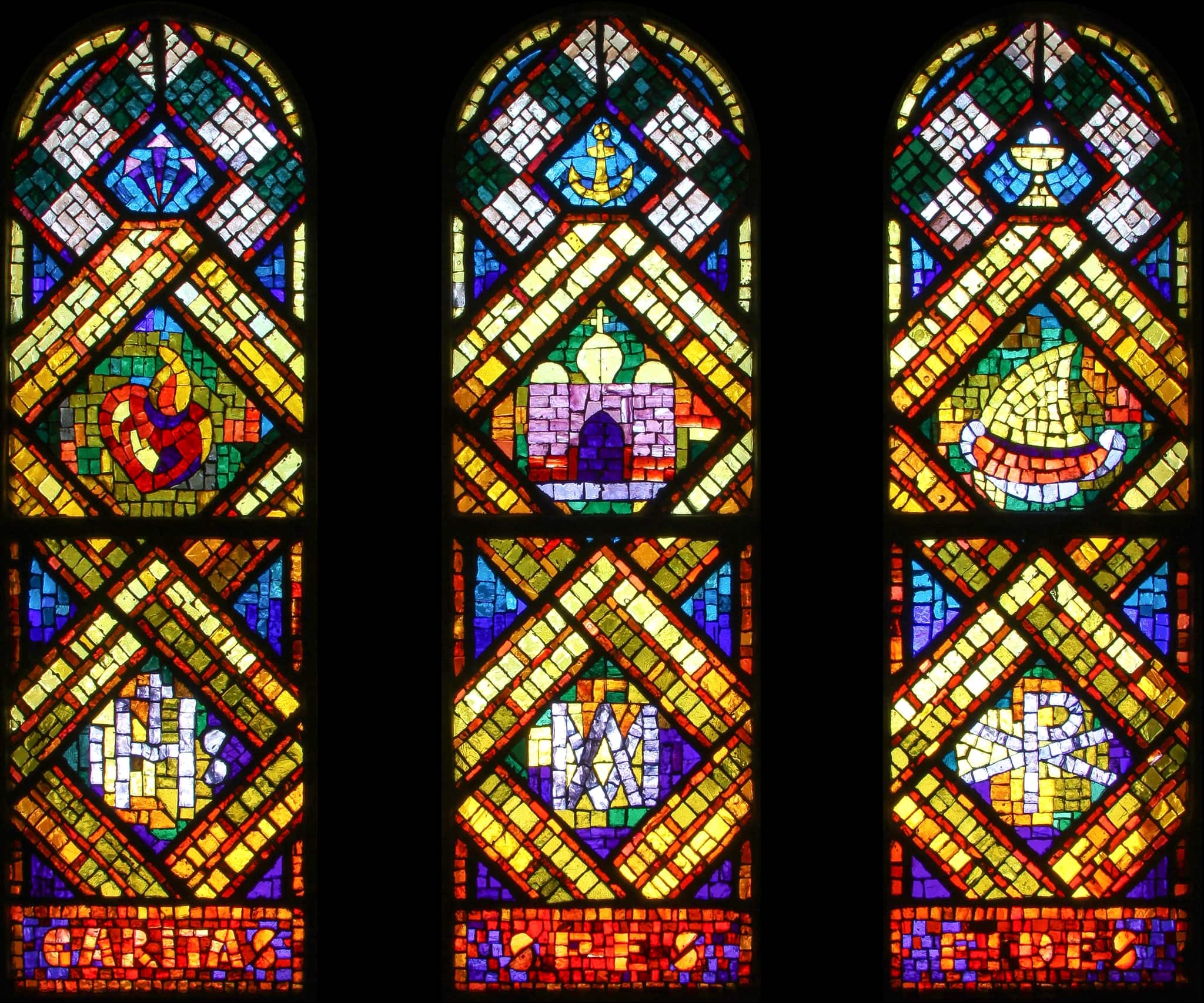 CARITAS // SPES // FIDES (en bas des trois baies)
