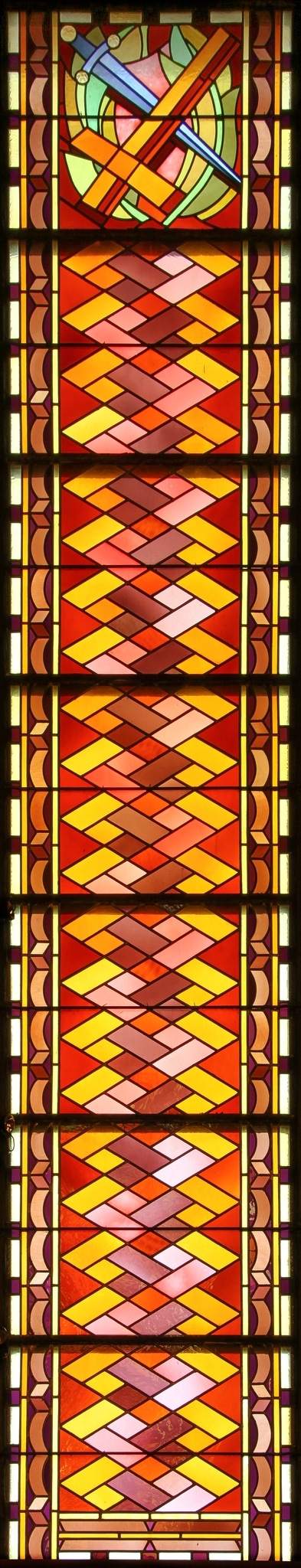 GSL_290: Vitrail géométrique avec les symboles de saints Pierre et Paul