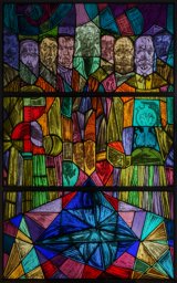 Le vitrail se compose de onze panneaux répartis en trois parties.