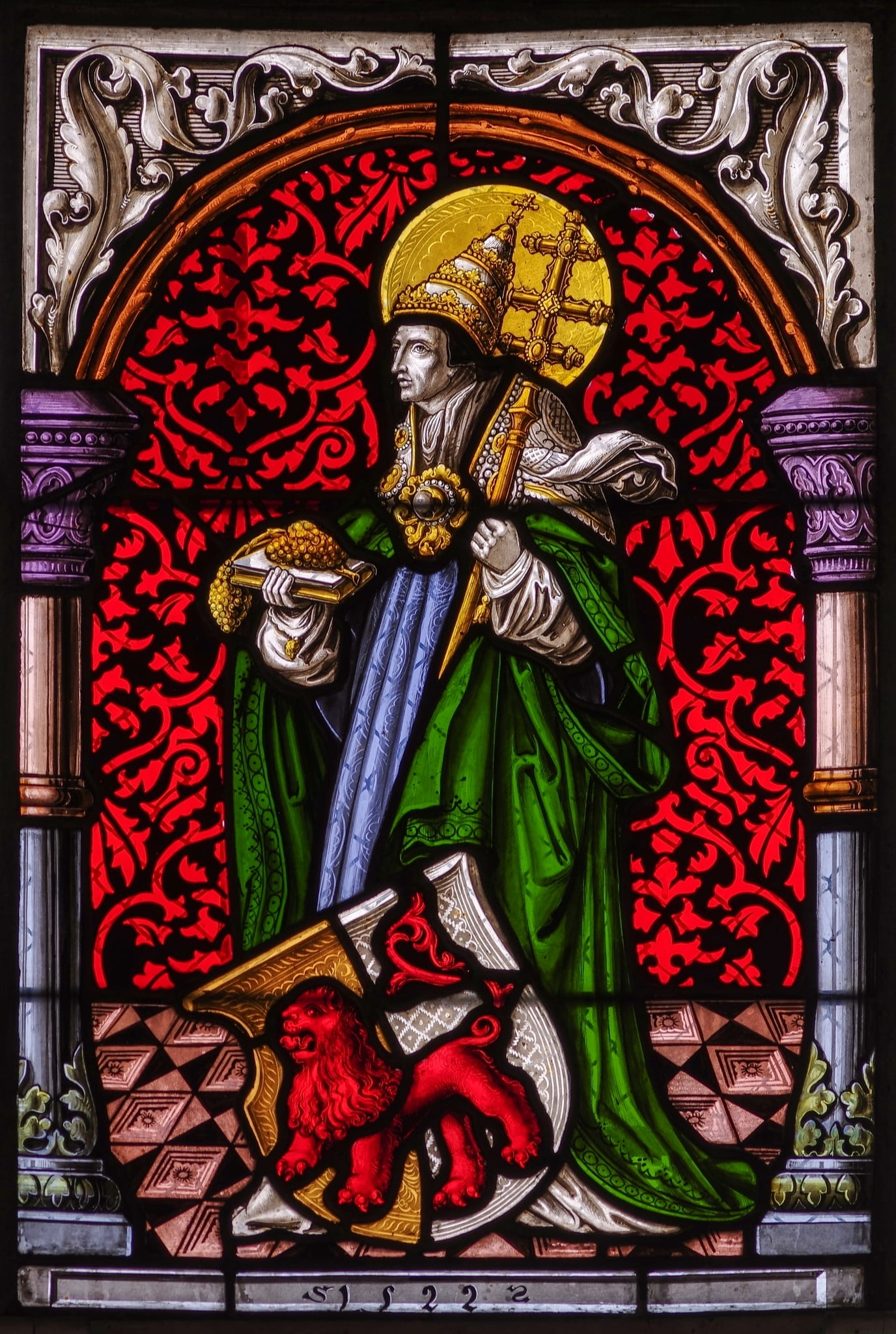 Pour cette verrière consacrée à saint Urbain, c’est un panneau original datant autour de 1522 et attribué au peintre verrier zurichois Hans Funk par Lehmann (1915, p. 153-155), conservé non pas à Ursenbach mais à l'église Saint-Martin d'Utzenstorf (BE) (BE_712) (Baeriswyl, 2004, p. 25, 26) qui a servi de modèle à Johann Heinrich Müller. Huit vitraux, dont celui consacré à saint Urbain, ont été offerts en 1522 pour la construction de la nouvelle église d’Utzenstorf et ont été réalisés par le même atelier, celui de Hans Funk (Lehmann, 1915, p. 25, 26). L’oeuvre de Müller diffère quelque peu de l’original, en particulier pour l’encadrement architectural qu’il a simplifié, notamment pour les colonnes qui sont plus fines. Urbain est quant à lui en tous points identique à l’original, à l’exception de la tiare qu’il a souhaité bicolore (blanche et dorée) plutôt qu’entièrement dorée.