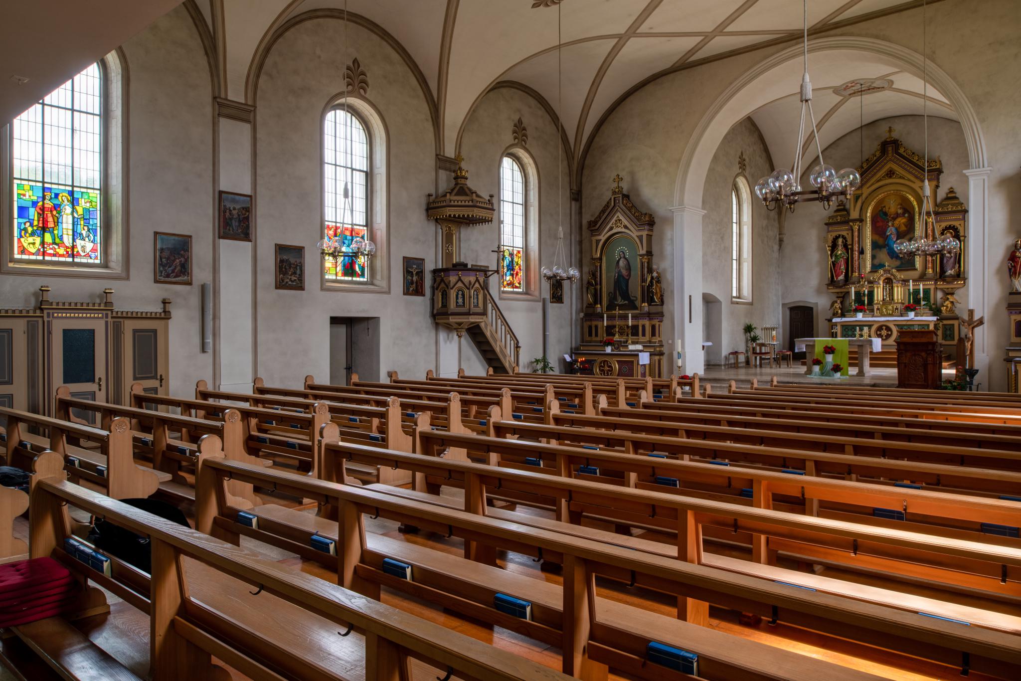 1875 von Wilhelm Keller im neuromanischen Stil erbaut. Anlässlich einer Renovation 1957–58 schuf August Wanner sieben Glasgemälde zur Legende der heiligen Idda. 1975 kamen drei weitere Glasmalereien, von Jost Blöchliger, hinzu.