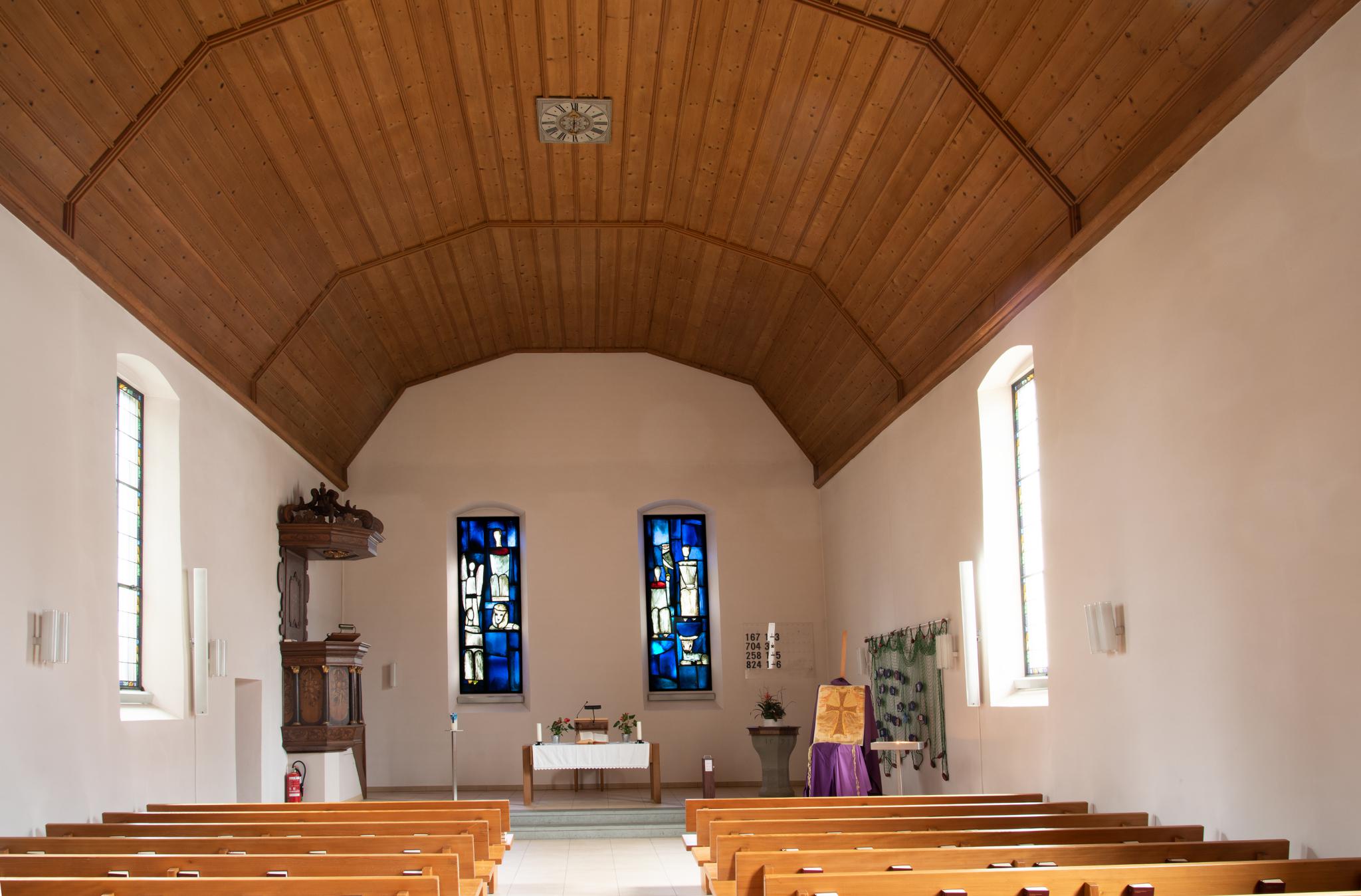 Schlichter Giebeldachbau mit behelmtem Dachreiter. Im südwestlichen Teil der heutigen Kirche haben sich Teile der romanischen Kapelle St. Peter erhalten. Die ursprünglich katholische Kapelle, erstmals erwähnt 1158, wurde 1549 durch das Kloster Kreuzlingen an das seit 1528 protestantische Kurzrickenbach abgetreten. Vergrösserungen 1603 und 1695, Neubau des Dachreiters 1794, Renovationen 1901, 1919/1920. Restaurierung und Verlängerung des Raumes nach Osten sowie Abbruch des Turms und neuer Dachreiter 1965–66. Schifffenster mit Zierrahmen von 1940/1969 Mäder & Co., in der Ostwand zwei Evangelistenfenster 1966 von Gian Casty.
