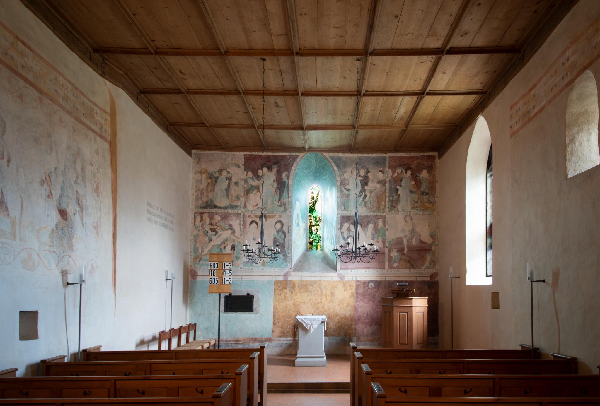 Erbaut im 13. Jahrhundert. Die Rechnungen im Kirchgemeindearchiv Gachnang verzeichnen mehrere Zahlungen an Glaser zwischen 1593 und 1867. Bei den ausgeführten Arbeiten handelt es sich hauptsächlich um Blankverglasungen und Flickarbeiten (vgl. Herrmann, 1991a, S. 41). Renoviert 1947.