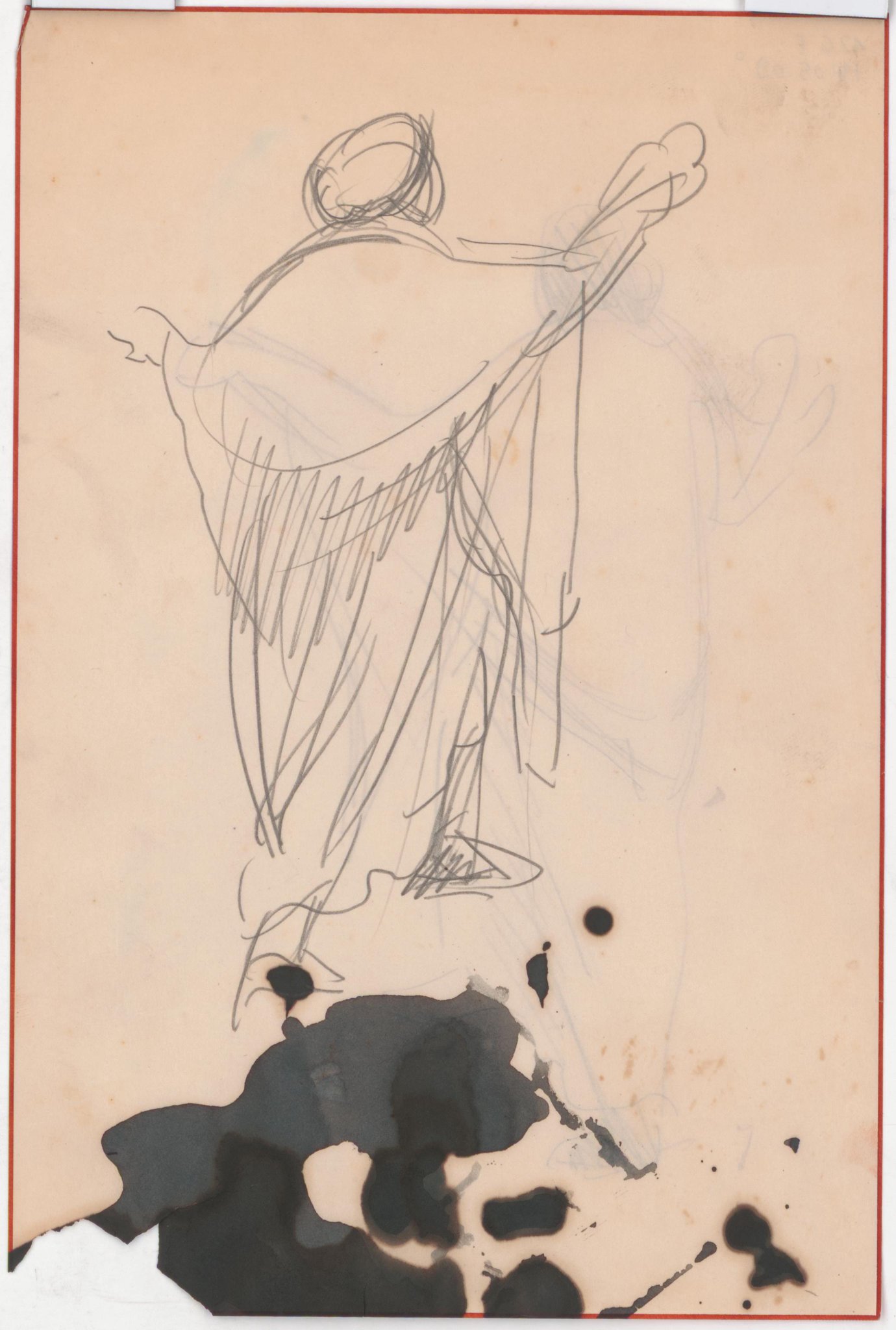 Elisabeth (?) de dos tendant les bras au verso d'une esquisse pour le vitrail de la Visitation du Prieuré de Saint-Germain-en-Laye