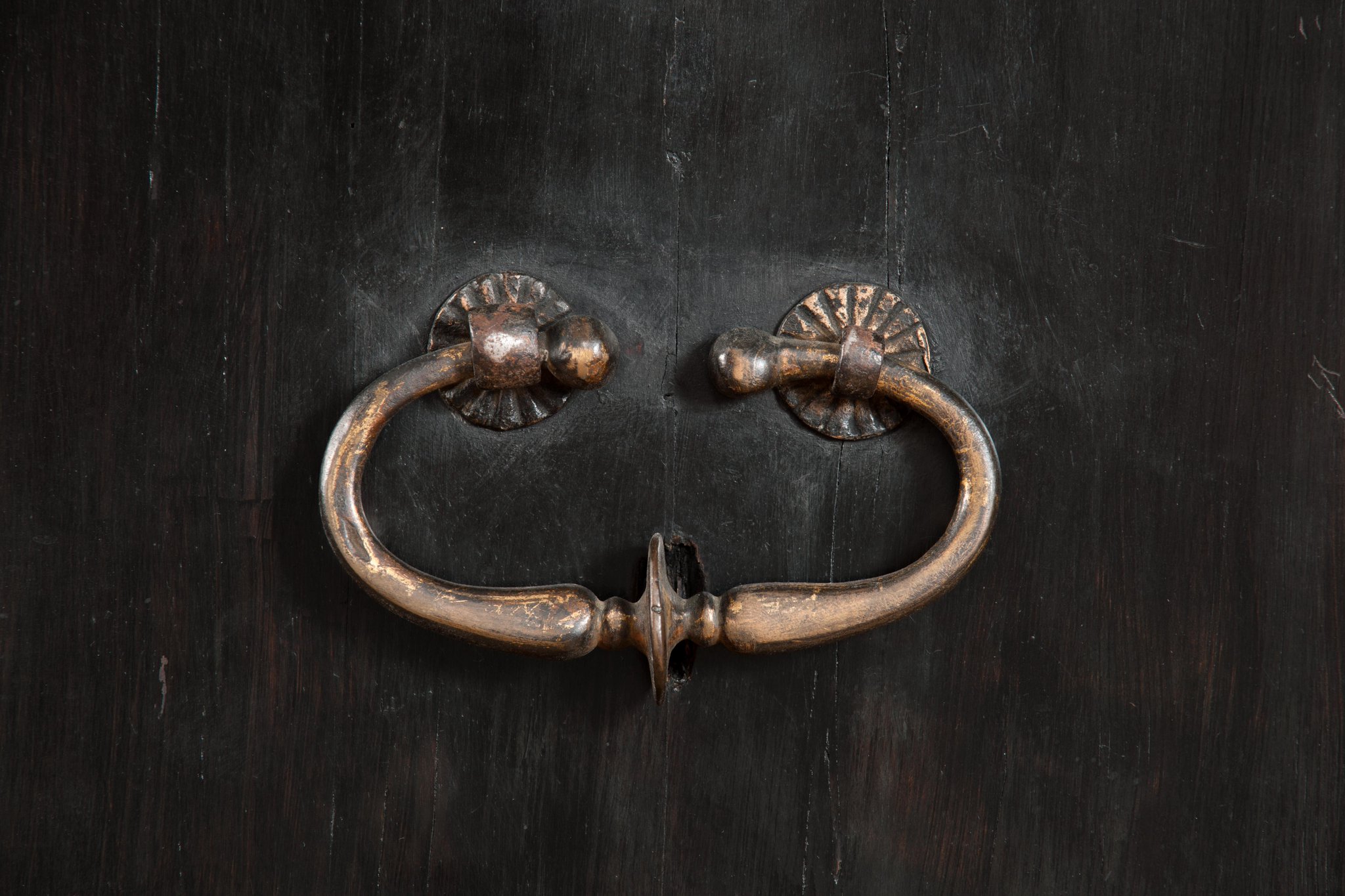 Detail: Kabinettschrank mit Hinterglaseinlagen von Cäsaren- und Sibyllenköpfen