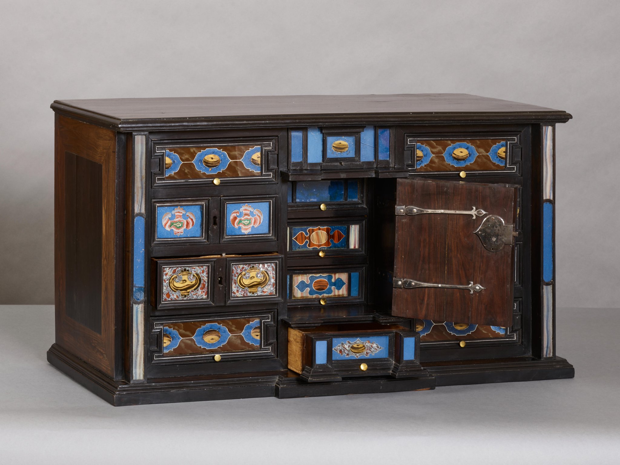 Kabinettschrank mit hintermalten Glaseinlagen in Pietra dura-Imitation