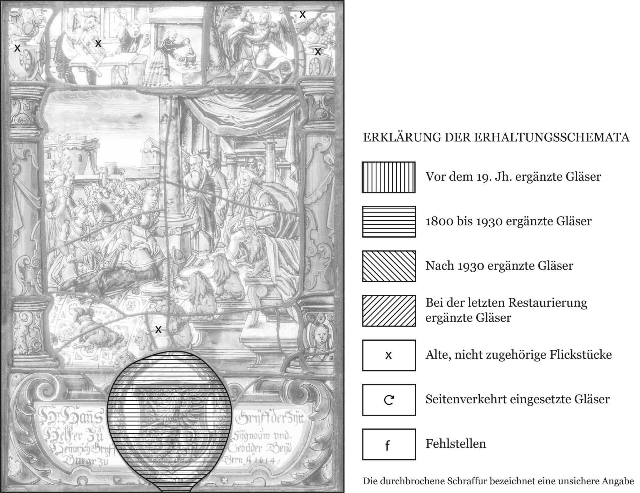 Schema Bildscheibe Hans und Heinrich Greiff (Gryph) (?) mit Königin von Saba vor Salomon