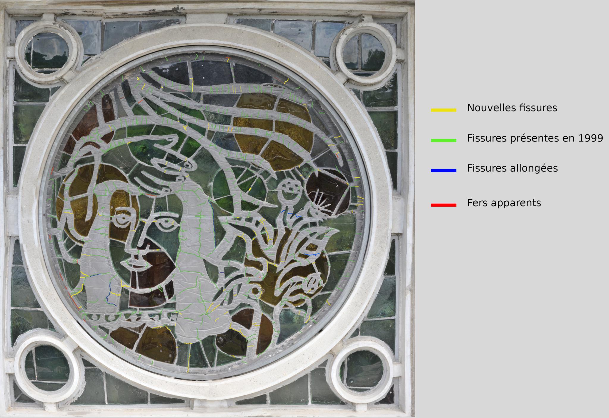 Constat d'état de l'Annonciation, vitrail réalisé par Fernand Léger pour l'église de Courfaivre (Jura)