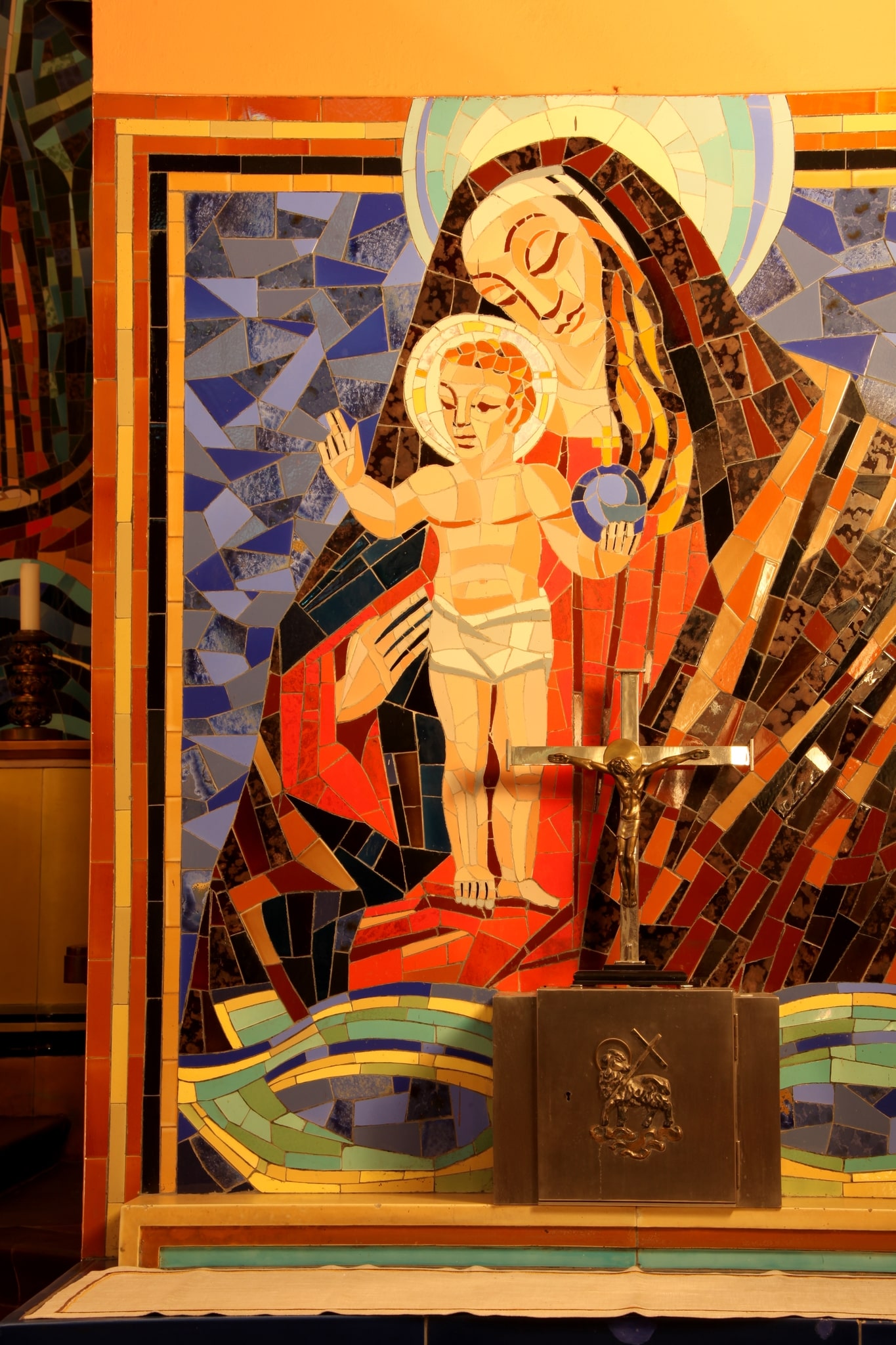 Détail d'une mosaïque de l'autel latéral de l'église Saints-Pierre-et-Paul de Fontenais