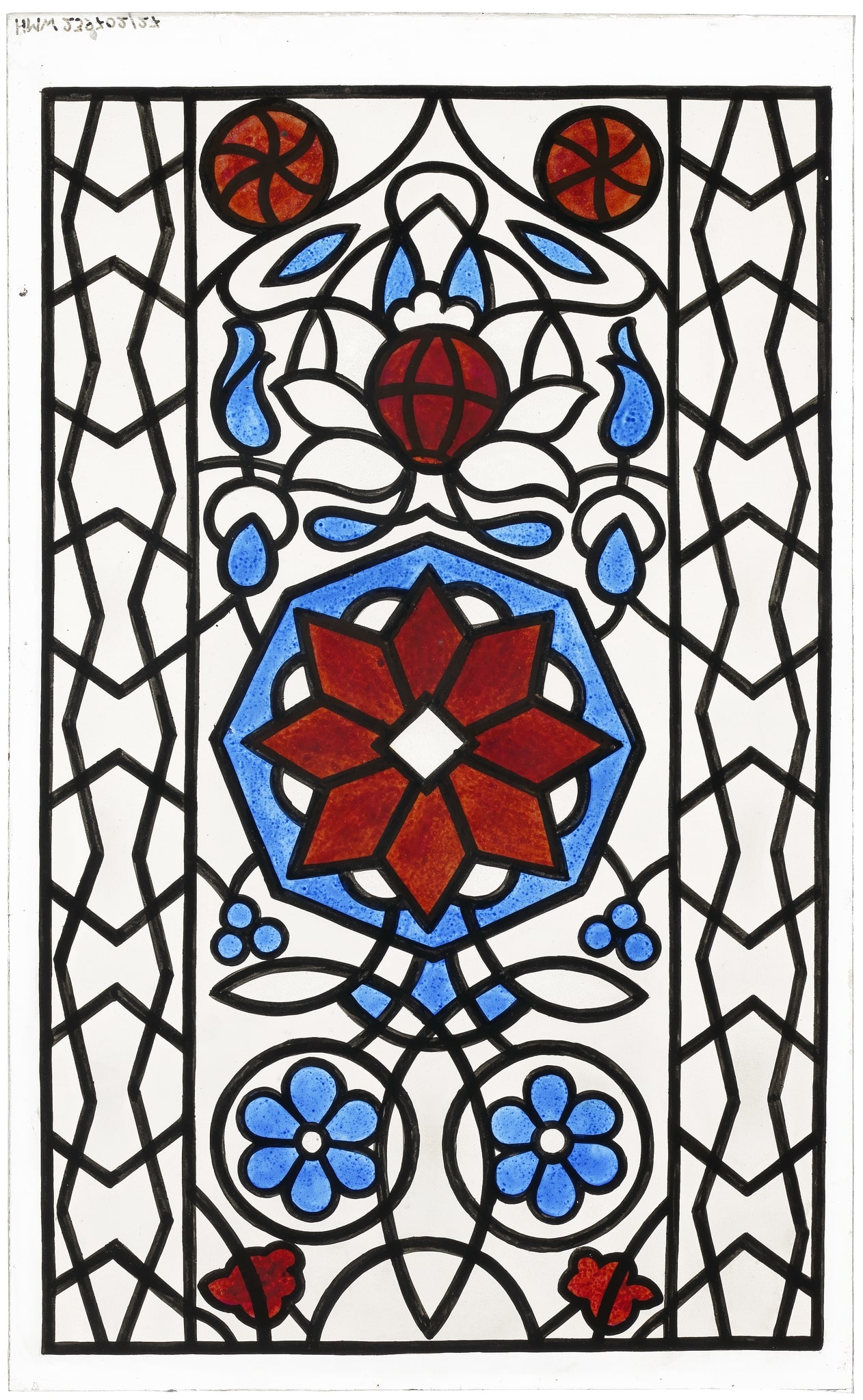 IG_375: Replica of stucco and glass window with floral and geometric ornamentation