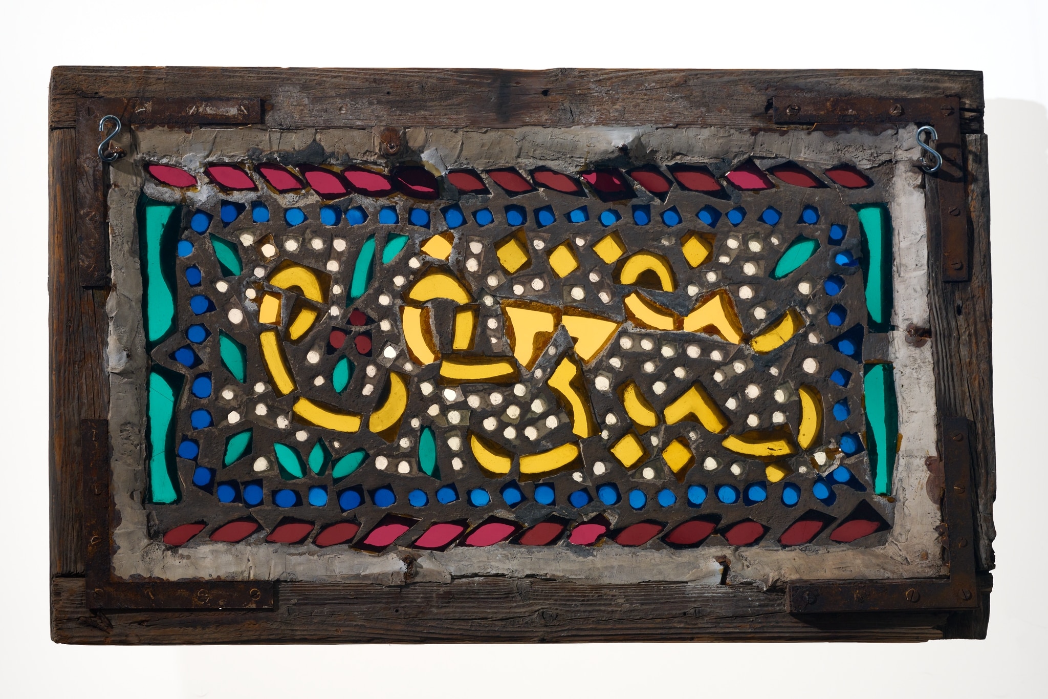 IG_496: Stucco and glass window with inscription