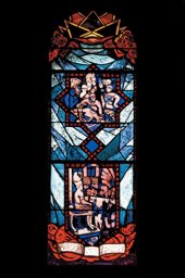 Ce vitrail en plein cintre a été réalisé en 1926 par l’artiste genevois Alexandre Cingria et par l’atelier lausannois Chiara pour une des quatre fenêtres du vestibule situées de chaque côté de l’entrée de l’église Saint-Paul de Cologny (GE), dans le quartier de Grange-Canal.
