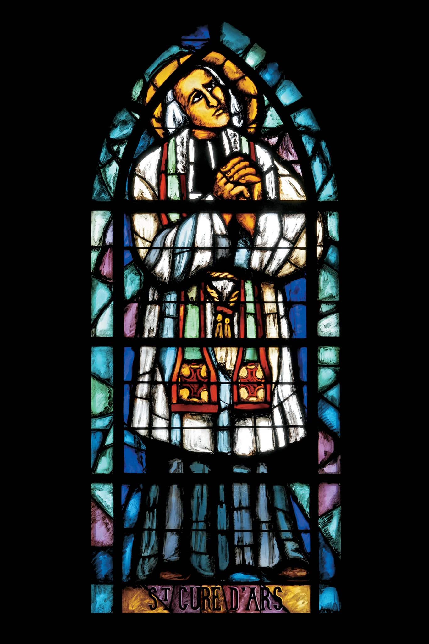 Le Curé d’Ars prie, tout en regardant vers le ciel.