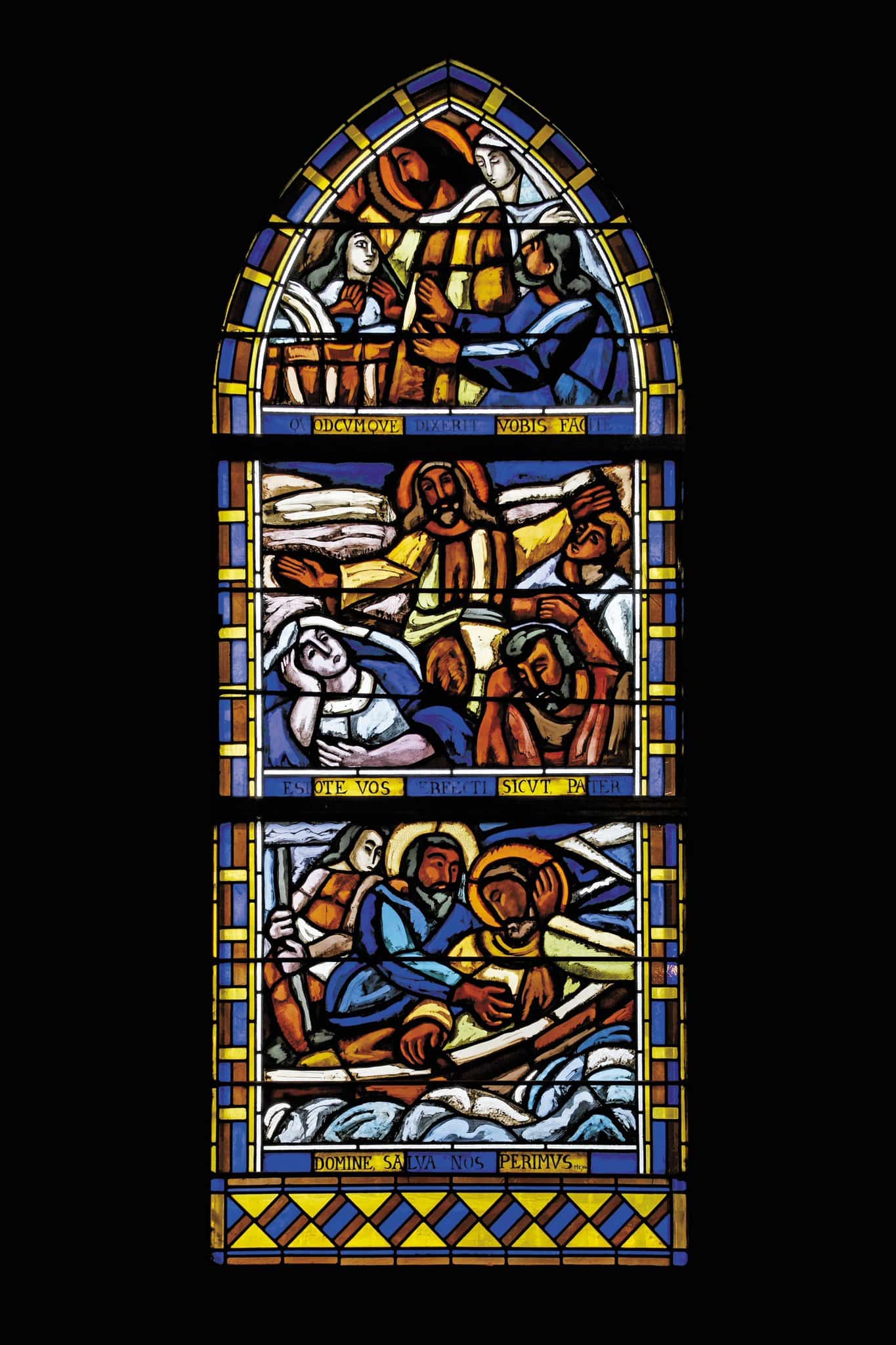 Le Christ change l’eau en vin aux Noces de Cana. Le Christ enseigne la bonne parole à la foule. Les disciples, effrayés par la tempête, réveillent le Christ endormi dans la barque.