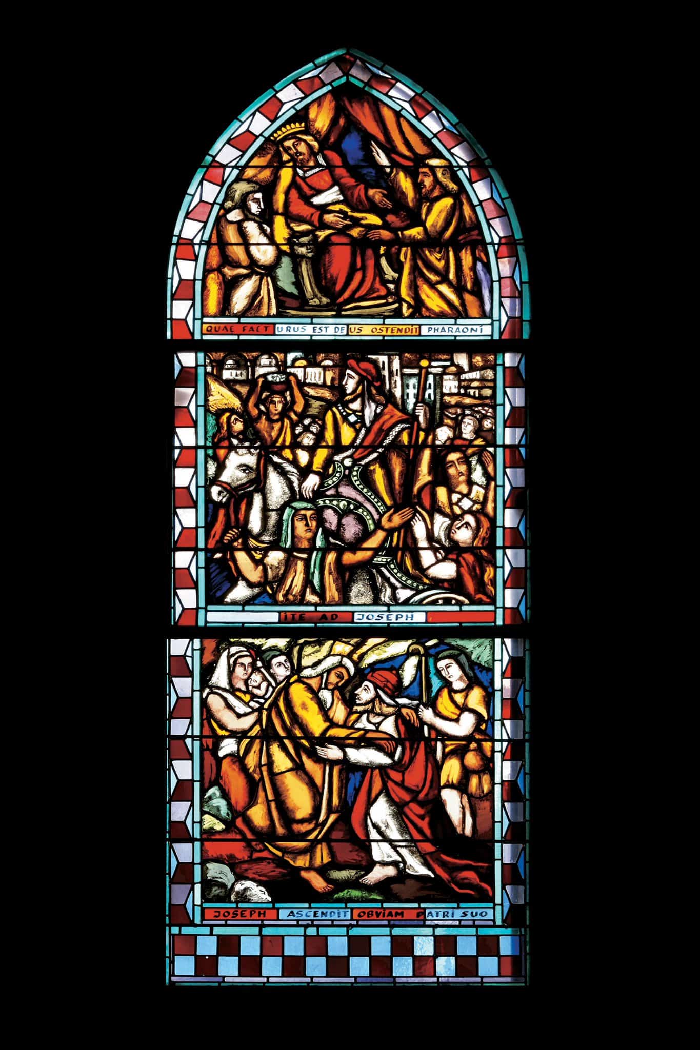 QVae factVrVs est DeVs ostendit pharaoni / Ite ad Joseph / Joseph ascendit obriam patri suo (bandeau sous chaque scène)