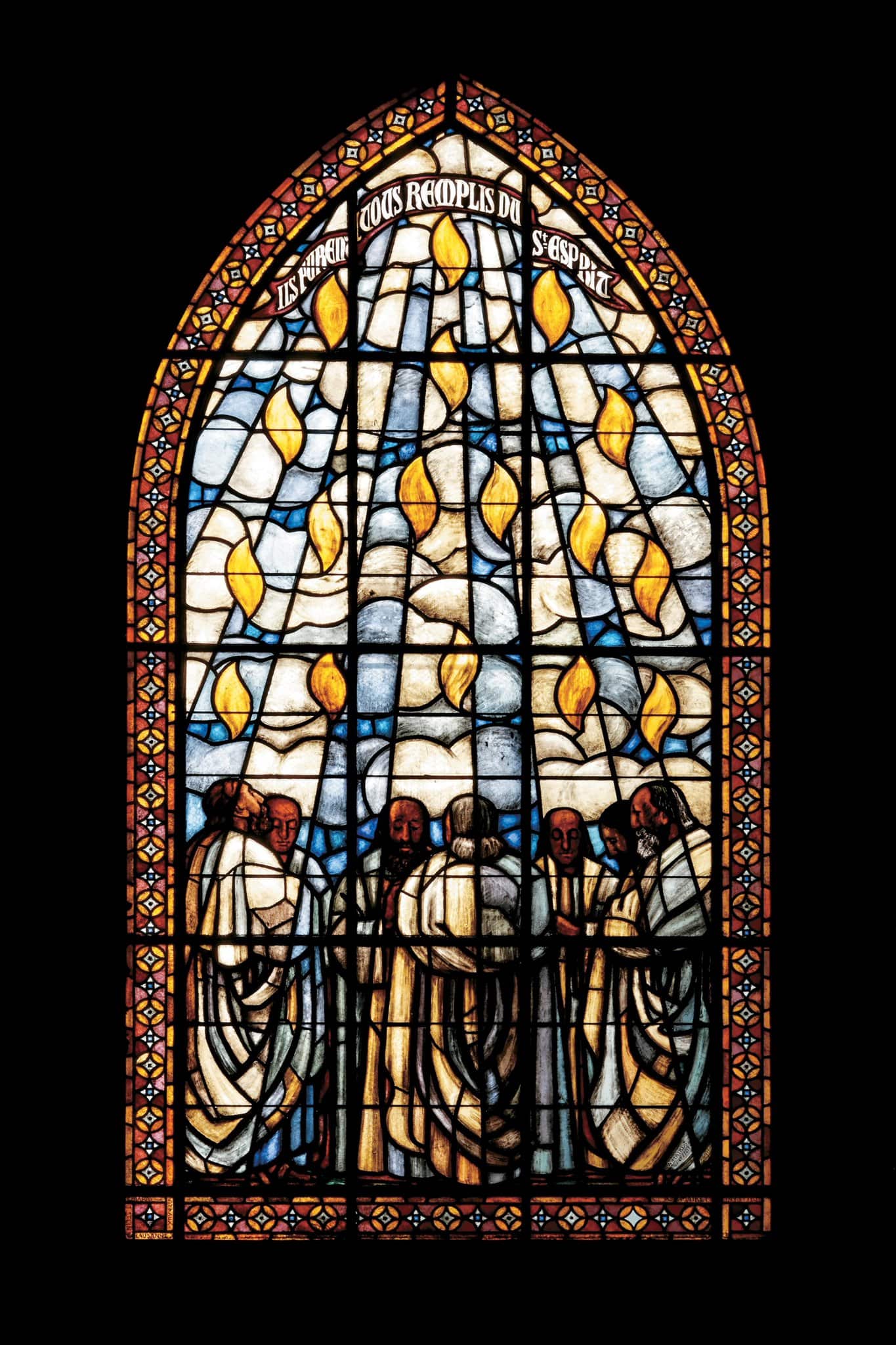 Les apôtres reçoivent l’Esprit Saint sous la forme de langues de feu.