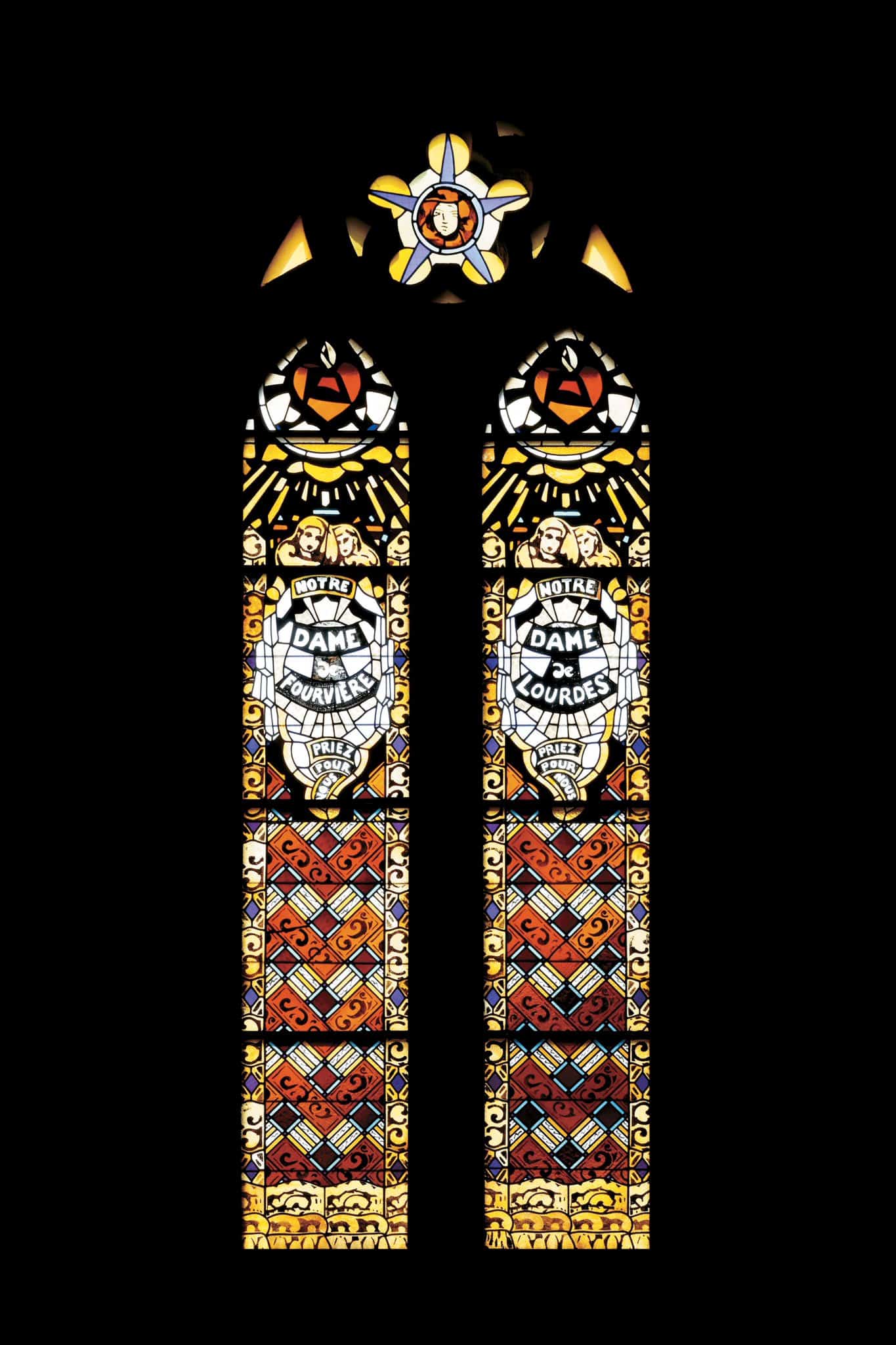 Ce vitrail était placé dans les fenêtres hautes de la nef avant la restauration de 1975.